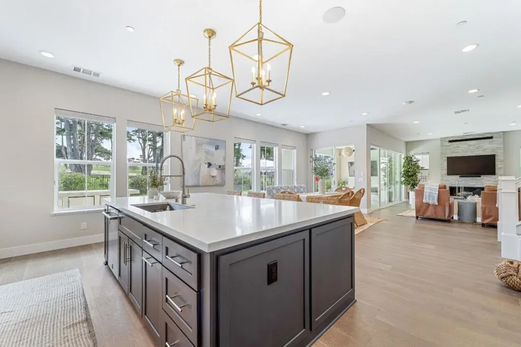 Sophisticated coastal living awaits within the exclusive gated community of The Enclave at Bayonet Black Horse. Perfectly positioned along the golf course, this thoughtfully designed residence enjoys serene views of mature trees and manicured grounds. Offering four bedroom suites, including one on the main level, the home showcases meticulously curated finishes such as high-end kitchen appliances, marble in the bathrooms, warm wood flooring, custom lighting, and a soft, sophisticated palette throughout. The open-concept design is enhanced by two fireplaces and dramatic floor-to-ceiling glass doors that fully open to the outdoor living space, creating seamless indoor-outdoor flow. Designed for both relaxation and entertaining, the backyard features a putting green, bocce court, built-in BBQ with outdoor bar, and a covered dining patio. Located in the coastal community of Seaside, this exceptional home pairs elevated design with effortless beachside living.