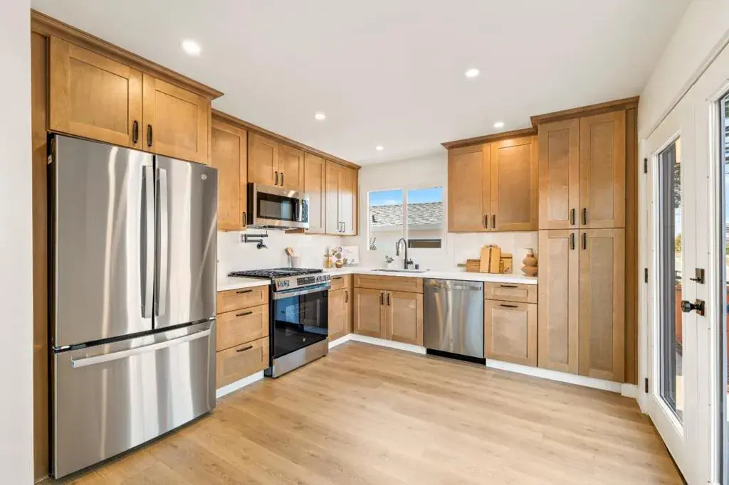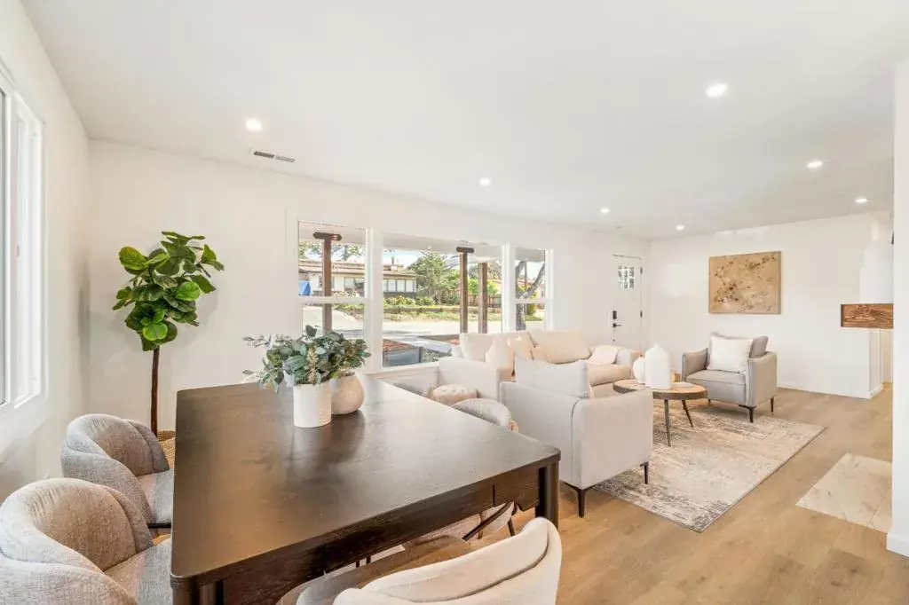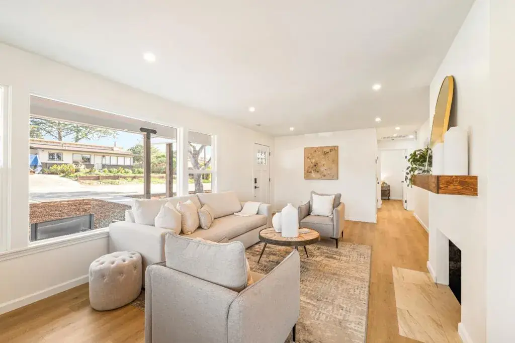 Tucked away on a quiet street in desirable Upper Seaside, this fully remodeled home sits on a spacious corner lot offering ample room to add an ADU. Taken down to the studs and thoughtfully reimagined, the home features new electrical, plumbing, and central heating system. Inside, you’ll find 3 bedrooms and 2 full bathrooms, wood plank flooring, and a stunning kitchen with quartz countertops, a gas range, under-counter lighting, and stainless steel appliances. A cozy fireplace adds warmth and charm to the living space while the new Milgard windows, plaster, and insulation keep the heat in. French doors open to a patio perfect for relaxing or entertaining. Additional highlights include a finished one-car garage with an opener, an oversized 220-sf storage shed, all-new fencing, and fresh landscaping. Conveniently located near shopping, the beach, and the recreation trail for walking and biking. Move-in ready with excellent potential to expand with an ADU, this home offers both modern comfort and future flexibility. Location, Location, Location!