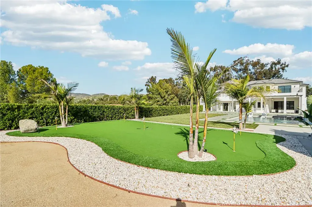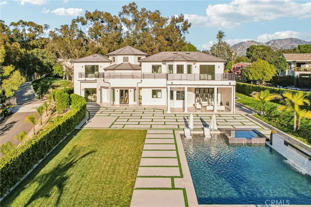 Brand-New Shadow Hills Stunner | Ultimate Luxury Estate! Welcome to luxury living at its finest. This brand-new Shadow Hills estate spans over 5,650 square feet of impeccably designed living space and delivers a true entertainer’s masterpiece. Enter through custom wrought-iron doors into a breathtaking formal foyer showcasing soaring two-story ceilings and a dramatic double staircase—a striking architectural statement from the moment you arrive. The step-down living room features a sleek modern electric fireplace, creating the perfect ambiance for entertaining. A formal dining room seamlessly transitions into the family room, highlighted by wall-to-wall folding glass doors that invite indoor-outdoor living at its best. At the heart of the home lies a one-of-a-kind chef’s kitchen, complete with a massive center island, Taj Mahal quartzite countertops, sophisticated German cabinetry, and top-of-the-line Miele appliances—a dream for both chefs and design enthusiasts alike. The expansive primary suite is a private retreat, featuring a spacious balcony with stunning mountain views, a generous walk-in closet, and a spa-inspired en-suite bath with soaking tub, dual vanities, and an oversized walk-in shower with rain head and floor-to-ceiling designer tile. Step outside to a true resort-style backyard, designed for ultimate entertaining. Enjoy a covered patio with fireplace, a Baja-style pool with waterfall, oversized spa, putting green, and lush landscaping supported by a drip irrigation system. The property also offers ample space for a guest house or sports court, just under an acre of land, a three-car garage with direct access, and a grand circular driveway. Without a question, the finest luxury estate Shadow Hills has to offer.