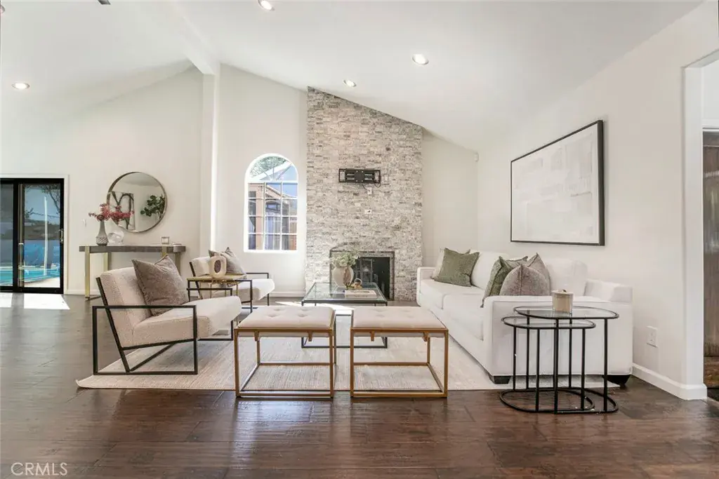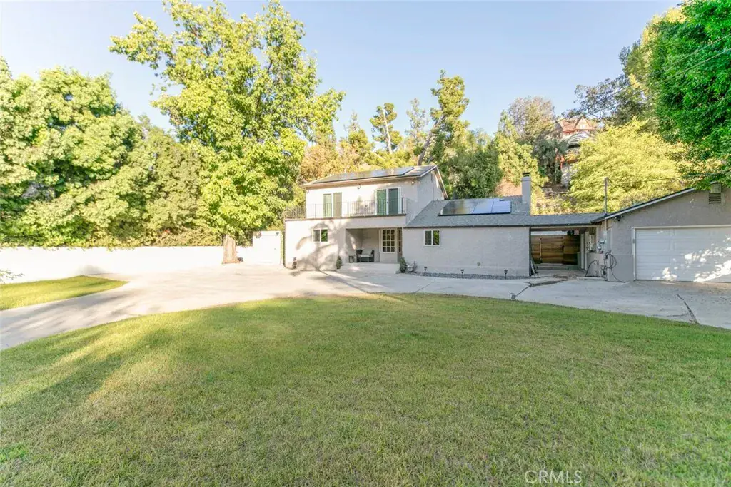 Welcome to this stunning 3-bedroom, 3r-bathroom home, offering a perfect blend of elegance, comfort, and functionality. Step inside to a grand living room with soaring cathedral ceilings and a cozy fireplace, creating the ideal setting for both relaxing and entertaining. The inviting kitchen features a charming breakfast nook, while multiple living and dining areas flow seamlessly for everyday comfort. Upstairs, one of the bedrooms opens onto a private balcony overlooking the street, providing a perfect spot to unwind. Enjoy California living at its finest in the backyard retreat, complete with a sparkling pool, spacious patio, and a beautiful wooden deck—perfect for hosting gatherings or simply enjoying the outdoors. Additional highlights include a circular driveway, gated entrance for privacy, and ample parking space. The property is also equipped with a fully paid-off solar system, offering eco-friendly living and reduced utility costs. This home combines thoughtful design with timeless appeal, making it a true standout.