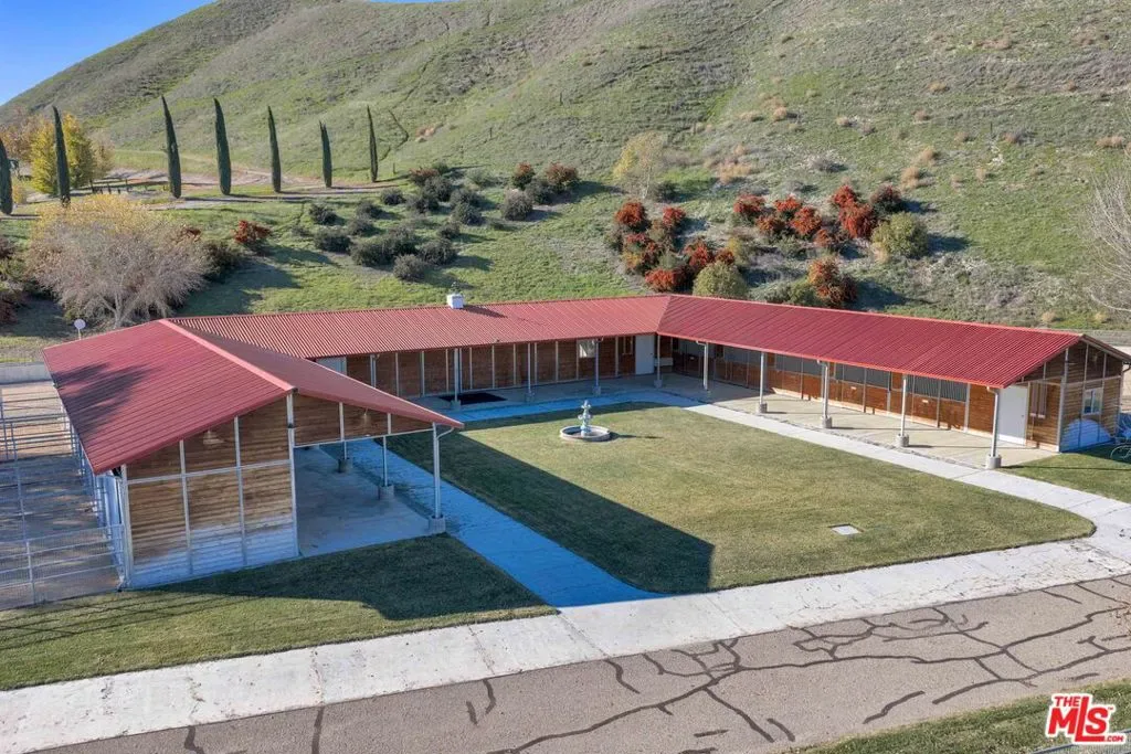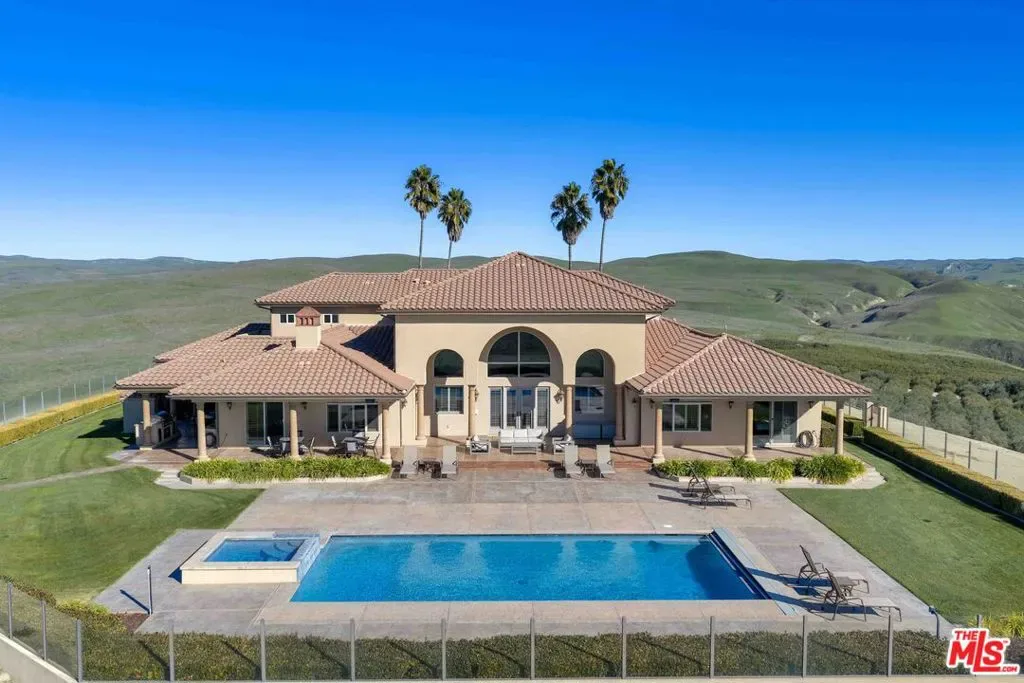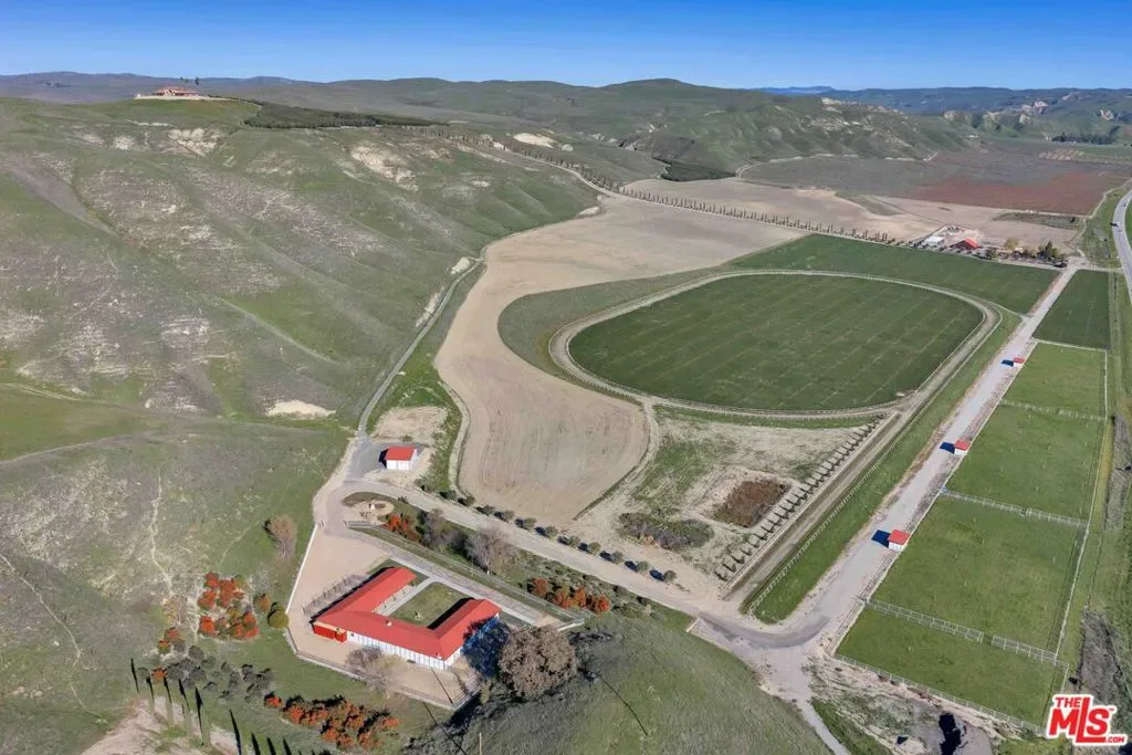 Welcome to Five Arches Ranch, an extraordinary 639+-acre estate in the heart of California’s Central Coast, where wide-open space, wine country living, and true ranch luxury come together. Spanning three legal parcels, this legacy property offers a rare combination of agricultural production, equestrian facilities, residential comfort, and exceptional privacy. At the center of the ranch sits a beautifully maintained 7,772 SF main residence (7BD/6.5BA), built in 2008 and positioned at the end of a gated, cypress tree-lined private driveway. Designed to frame panoramic ridgeline and vineyard views, the home features large windows, an attached guest quarters with a kitchenette, two 2-car garages, a resort-style 40′ x 20′ pool with automatic cover, a built-in spa, an outdoor kitchen with a pizza oven, and 745 feet of glass fencing surrounding the main compound. The chef’s kitchen is complete with high-end Dacor stainless steel appliances, a breakfast nook, sprawling granite counters, a walk-in pantry, and a climate-controlled wine cellar. The living room and loft benefit from soaring ceilings, natural light through large arched windows, and tasteful tile floors. Five Arches Ranch is deeply rooted in equestrian tradition. The extensive horse facilities include an impressive 60′ x 50′ horse barn with 11 stalls, an attached trainer’s apartment, 800 linear feet of fenced turnout, and a 40-foot radius hot walker. Additional structures include a 925 SF hay barn, a 4,000 SF equipment shed with a fuel station, a ranch office, two ranch houses, and a historic 1935 barn, seven buildings in total supporting full ranch operations. Agricultural assets include 12 acres of producing olive trees, 23 acres of Syrah (1998), 10 acres of Cabernet Sauvignon (2017), and extensive irrigated ground (264.62 acres). Four high-capacity wells have been tested and support farming, equestrian use, and future expansion. The ranch also offers grazing land, a second elevated plateau ideal for a future home site, and nearly 2 miles of Highway 46 frontage for accessibility. A property of this scale, versatility, and beauty is exceptionally rare in Paso Robles wine country. Five Arches Ranch offers land, luxury, privacy, water, and income potential, all in one extraordinary package. | All showings must be scheduled 24 hours in advance. | Shown to prequalified clients only.