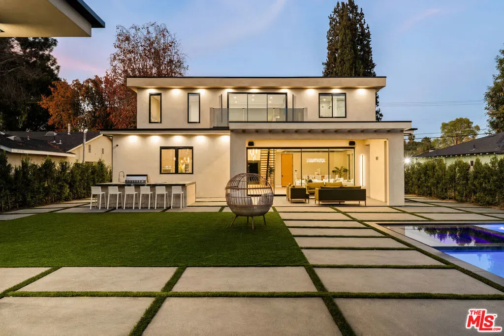 Completed in 2026, this striking new construction luxury estate delivers elevated contemporary living in one of the San Fernando Valley’s most coveted residential enclaves. Set on an expansive nearly 10,000 square foot lot, the approx. 4,252 square foot main residence showcases a refined architectural design built for both impressive entertaining and effortless daily living. A grand entry reveals an open foyer that perfectly greets you, creating an immediate sense of sophistication. At the center of the home, the gourmet chef’s kitchen is a true showpiece, featuring bespoke cabinetry, premium materials, and top tier Thermador appliances ideal for hosting, entertaining, and culinary creativity. Adjacent living spaces flow seamlessly and include a dedicated, state of the art home theater, thoughtfully designed for immersive movie nights, sports viewing, and private entertainment. The thoughtfully designed floor plan offers five generously sized bedrooms and six and a half designer bathrooms, including an indulgent primary suite complete with a spa style bathroom and an oversized walk-in closet. High end finishes, custom detailing, automatic window treatments, and full Control4 smart home integration elevate the living experience throughout. Designed for seamless indoor/outdoor living, the home opens to an approx. 335 square foot patio ideal for al fresco dining. The private backyard oasis features a sleek lap pool and spa, along with an approx. 217 square foot pool house/cabana with its own bathroom perfect for guests, a home gym, or a private office. Moments from Ventura Boulevard, this exceptional property offers convenient access to premier dining, shopping, and lifestyle destinations. A rare opportunity to own a brand-new luxury home that perfectly balances modern design, smart technology, and timeless elegance in a prime Valley location.