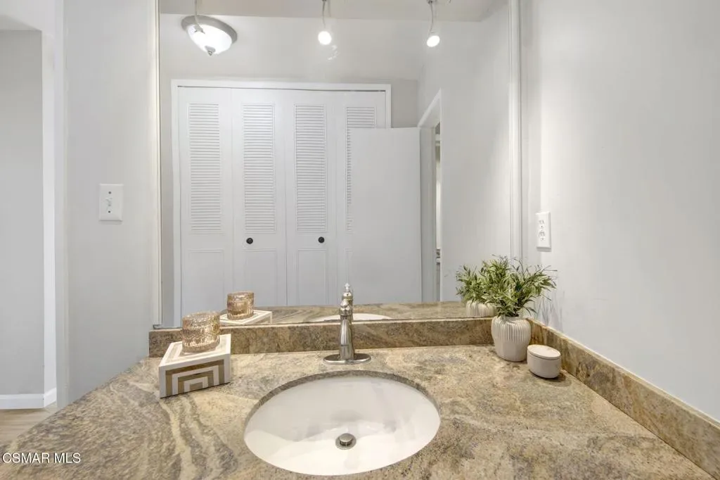 Welcome to this bright and private top-floor corner residence ideally situated in the heart of Sherman Oaks. With approximately 1,369 square feet of living space, this 2-bedroom, 2-bath condominium offers an exceptional combination of space, natural light, and thoughtful layout.Freshly painted interiors and laminate flooring create a warm, move-in-ready atmosphere throughout. The open-concept living and dining areas are anchored by a cozy fireplace and accented with stylish wall sconces, creating an inviting setting for both relaxing and entertaining. The kitchen features an expansive counter area, seamlessly opening to the main living space and enhancing connection throughout the home.A central hallway leads to a spacious secondary bedroom with a full wall of closet storage and an adjacent full bathroom. Privately tucked toward the rear of the unit, the generously sized primary suite offers abundant closet space along with a dedicated dressing area and an additional vanity before entering the en-suite bath.As a third-floor corner unit, the home enjoys pleasant treetop views, lots of natural light, and only one shared wall, offering enhanced privacy along with the benefit of no neighbors above. The home also provides excellent in-unit storage, including a large interior closet suitable for additional pantry space or even a secondary refrigerator.Additional highlights include two side-by-side parking spaces in a secure gated garage, elevator access, controlled entry, and community laundry facilities conveniently located throughout the building.Residents enjoy beautifully maintained grounds and a community pool, all just moments from Whole Foods, Ventura Boulevard’s popular dining and shopping, Studio City, and convenient freeway access.A rare opportunity to own a spacious and private top-floor home in one of Sherman Oaks’ most sought-after locations.