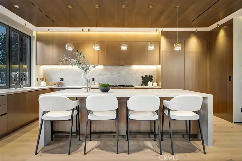 Situated in the prestigious Hidden Woods neighborhood of Sherman Oaks, this exceptional residence offers close to 4,000 square feet of thoughtfully designed living space, featuring 6 bedrooms and 5 full plus 2 powder rooms for elevated modern living. From the moment you enter, soaring ceilings and expansive living areas create a light-filled, open atmosphere that feels both grand and welcoming. Thoughtfully curated custom finishes are showcased throughout, complemented by a chef’s kitchen outfitted with premium appliances that seamlessly blend refined design with everyday functionality. Designed for both comfort and entertaining, the home flows effortlessly to the outdoors, where a resort-style backyard awaits. Lush, beautifully landscaped grounds are framed by stunning, full-grown trees, creating a private and serene setting. The outdoor space features a pool and spa, built-in BBQ, and multiple indoor-outdoor patio and entertaining areas—ideal for hosting gatherings or enjoying relaxed California living year-round. Perfectly positioned on a quiet, tree-lined street and Studio City–adjacent, the property is just minutes from Notre Dame High School, The Buckley School, and the iconic Sportsmen’s Lodge, along with its surrounding shops and dining. This is a rare opportunity to enjoy sophisticated living in one of Sherman Oaks’ most desirable enclaves, where luxury, comfort, and location seamlessly converge.