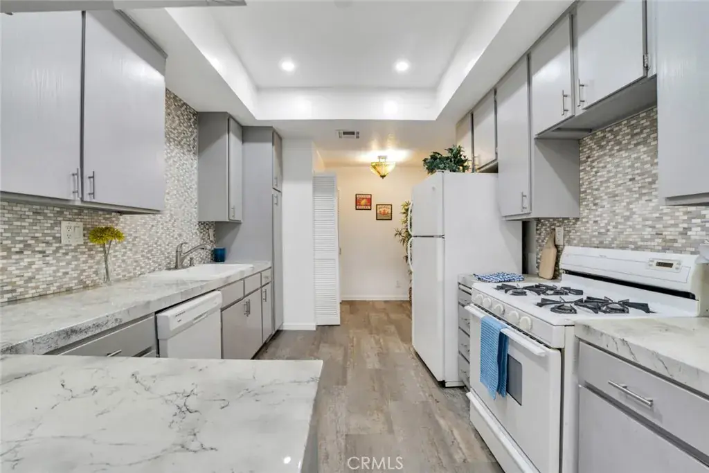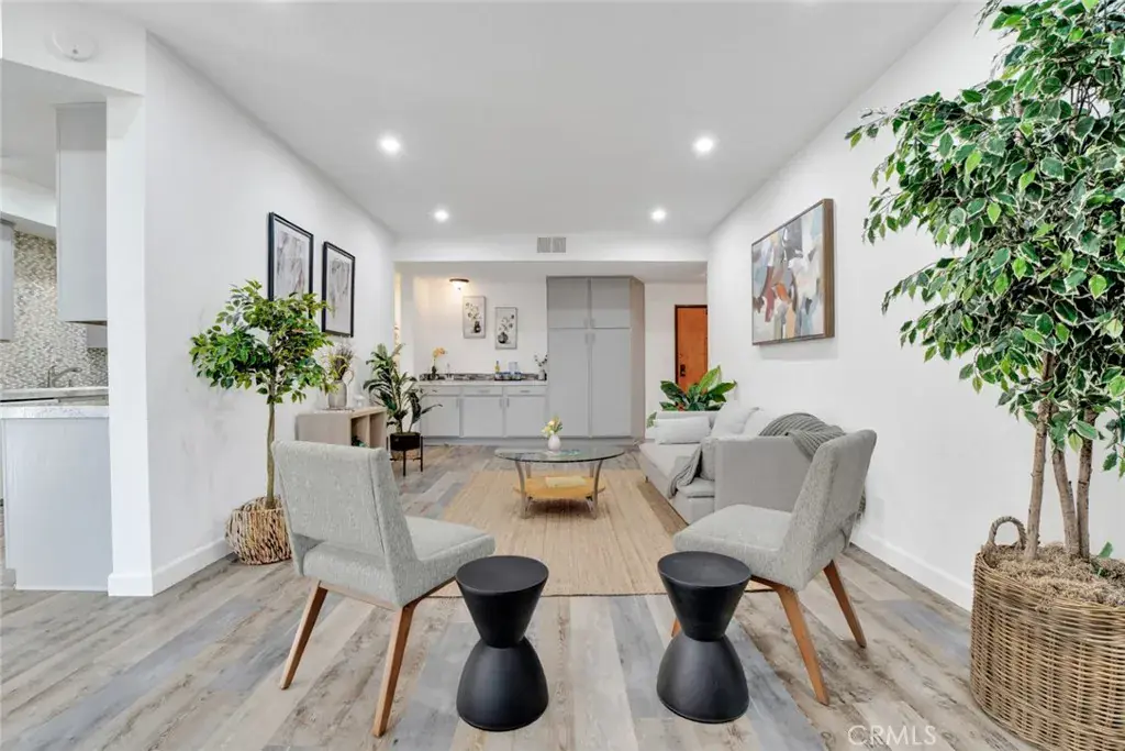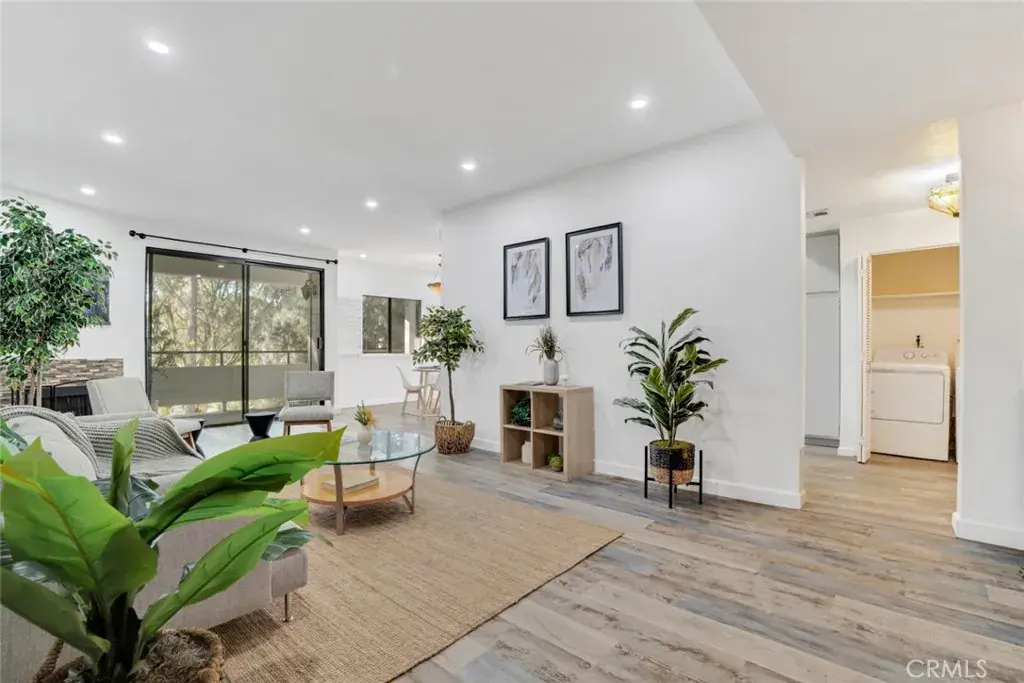 Modern elegance blends seamlessly with resort-style living in this stylish 2-bedroom, 2-bath condo set in the heart of Sherman Oaks. The expansive living area showcases plank flooring, a cozy fireplace, wet bar, and dining space, all flowing effortlessly to a generous balcony overlooking tranquil tree-lined views. The refreshed kitchen provides abundant cabinetry and a convenient in-unit laundry area. Retreat to the serene primary suite, complete with its own private balcony, a walk-in closet, and a spa-inspired bath featuring a deep soaking tub. Situated in a beautifully landscaped, resort-like community, residents enjoy two sparkling pools, a fitness center, and an inviting clubhouse—just minutes from premier shopping, dining, and all that Sherman Oaks has to offer.