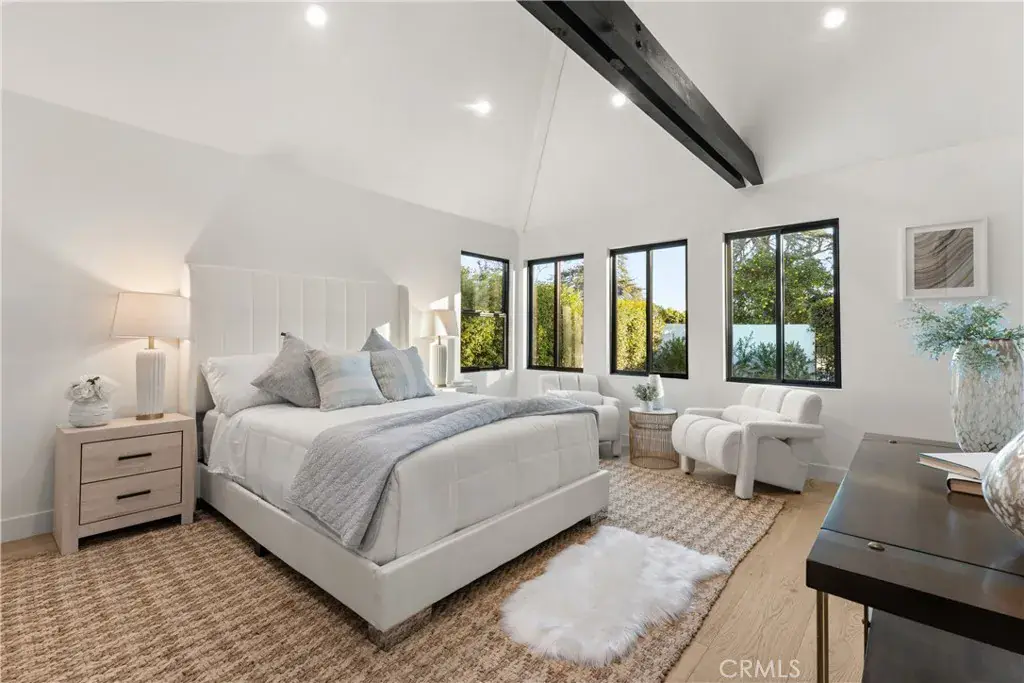 Elevated living awaits in this beautifully reimagined home, set on a gated corner lot in the coveted Chandler Estates neighborhood of Sherman Oaks. Inside, an inviting open concept floor plan features a spacious living/family room and formal dining room that flows seamlessly into the designer chef’s kitchen, equipped with top-of-the-line Thermador appliances, an oversized island with seating and walk-in pantry. Completing the main level are two versatile bonus rooms (currently staged as a media room and office), mud room off the garage and two well-appointed bedrooms, one with an ensuite bathroom. Upstairs, there’s a dedicated laundry room and three generously sized ensuite bedrooms, including a stunning primary suite that boasts a private balcony, dual walk-in closets and a spa-inspired bathroom, complete with a soaking tub, large rainfall shower, double vanity and smart toilet. Outside, the fenced-in backyard offers a built-in BBQ with bar seating, lush grassy lawn and ample patio space, perfect for elevated outdoor living and entertaining. Additional highlights include a security system with cameras, gated front yard and two-car garage. This property is ideally located just moments from Westfield Fashion Square, Ventura Boulevard’s premier shopping and dining, and so much more.