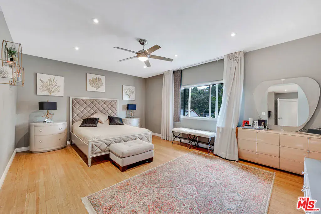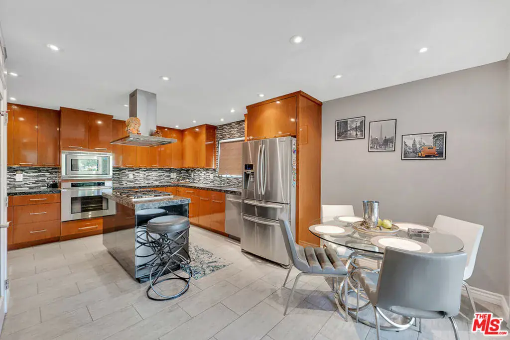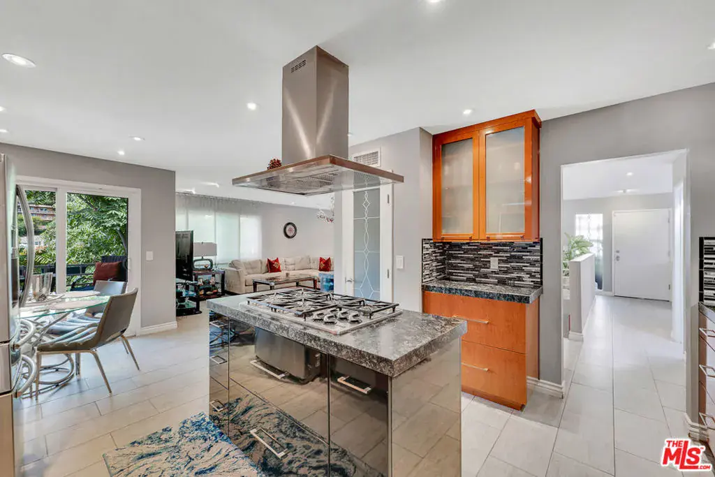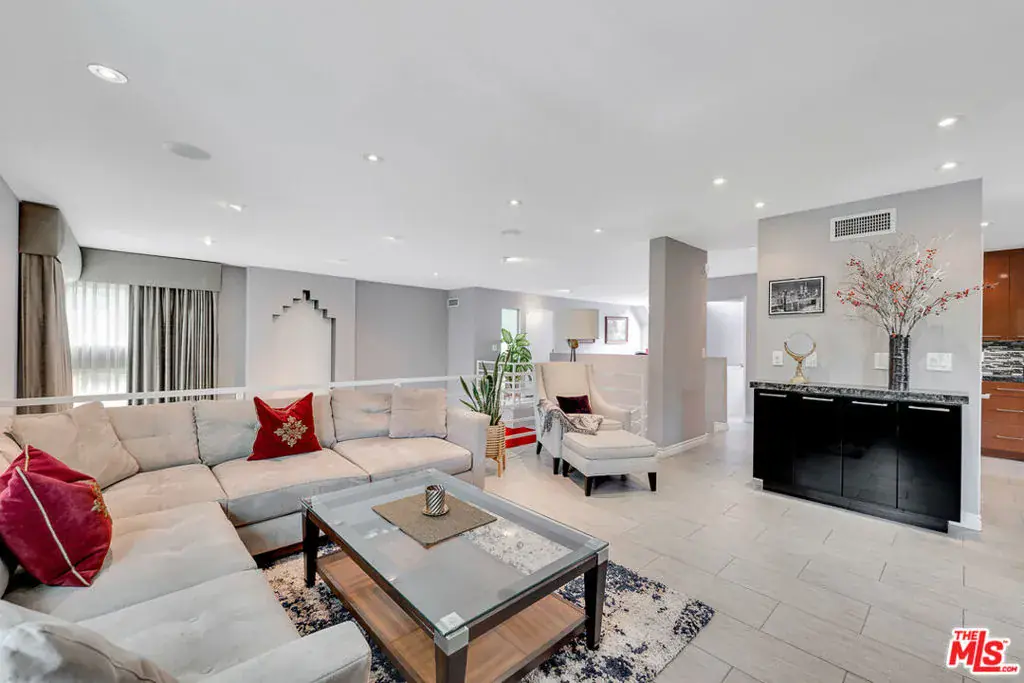 Nestled south of Ventura Boulevard in the highly coveted Sherman Oaks neighborhood, this move-in-ready home offers an exquisite blend of style, comfort, and breathtaking hillside views. Every corner of this residence has been thoughtfully designed to elevate your living experience. On the top floor, a sun-drenched dining room takes center stage, framed by floor-to-ceiling skylight windows that flood the space with natural light which creates a perfect space for memorable meals with loved ones. The chef’s kitchen is a culinary dream, boasting premium appliances, a generous center island with a six-burner stove, and abundant storage and walk-in pantry. Step onto the spacious balcony, where your mornings will begin with a cup of coffee and panoramic views that embrace the home. The lower level impresses with dramatic two-story vaulted ceilings and a dedicated living area tailor-made for entertaining. Complete with a stylish bar, wine fridge, and a cozy fireplace, it’s the perfect setting for hosting guests or enjoying relaxed evenings. All three bedrooms are conveniently located on a lower level. The primary suite is a retreat unto itself, offering a refined ensuite bathroom with a double vanity, two closets including a walk-in, and a luxurious walk-in shower with a waterfall showerhead and striking black tile design. The second bedroom features a walk-in closet and an elegant ensuite bathroom with a sizable walk-in shower. Third bedroom is just as specious. Outside, the charm continues with a private yard oasis, ideal for weekend barbecues and unwinding amidst the tranquil hillside scenery. Located mere moments from Sherman Oaks’ vibrant restaurants, trendy bars, boutique shopping, entertainment, and a top-rated charter school, this home combines unparalleled convenience with the allure of scenic living. Don’t miss the chance to make this exceptional property your home! The property now features different furniture.