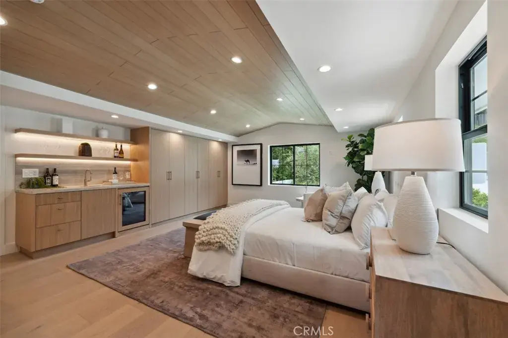 South of the Boulevard, Newly Remodeled!!! Experience elevated living in this beautifully reimagined custom home, ideally located in one of Sherman Oaks’ most coveted neighborhoods—walking distance to Ventura Blvd’s top restaurants, boutiques, and cafes. Meticulously remodeled with a focus on natural, organic design, this light-filled sanctuary features an airy open floor plan with vaulted white oak ceilings, expansive sliding glass doors, and serene tree-dappled views. The chef’s kitchen is a showstopper, showcasing Taj Mahal natural stone countertops, Thermador appliances, custom white oak cabinetry, and European white oak floors throughout. Indoor-outdoor flow is seamless, opening to perched balcony and a lush backyard with a covered patio—ideal for entertaining or quiet relaxation with room for an infinity pool to complete the outdoor oasis. A rare blend of high-end craftsmanship, tranquility, and walkability in prime Sherman Oaks.