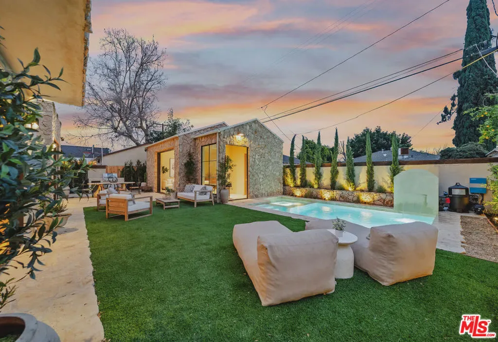 This new construction Modern Tuscan residence blends timeless European warmth with refined contemporary luxury. Offering 5 bedrooms and 5.5 bathrooms, including a beautifully integrated ADU, the home is thoughtfully designed for both elegant living and effortless entertaining. Designer finishes elevate every space, from Roman clay walls to striking Statuario Rosso marble, complemented by custom walnut woodwork that adds richness and depth throughout. The spa-inspired primary suite features a beautiful arched double shower, creating a true retreat-like experience at home. Outdoors, the residence continues to impress with a serene natural stone patio and pool, delivering a resort-style ambiance ideal for relaxation or gatherings. Set in a superior, highly walkable location, this home offers the rare combination of privacy, luxury, and everyday convenience. A distinctive opportunity to own a masterfully crafted home where craftsmanship, design, and location come together seamlessly.