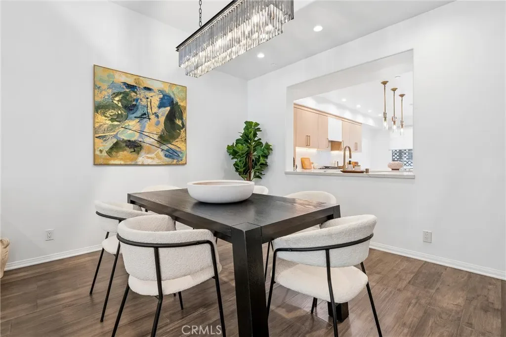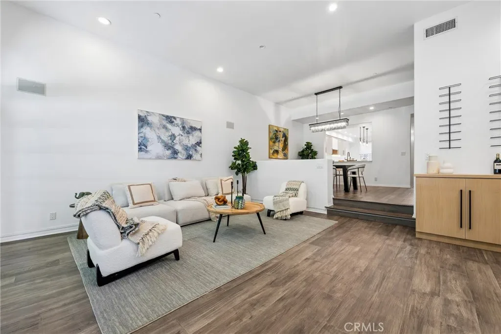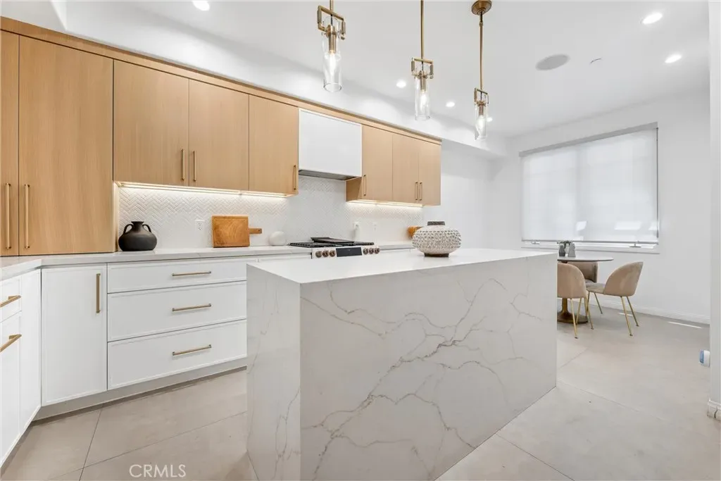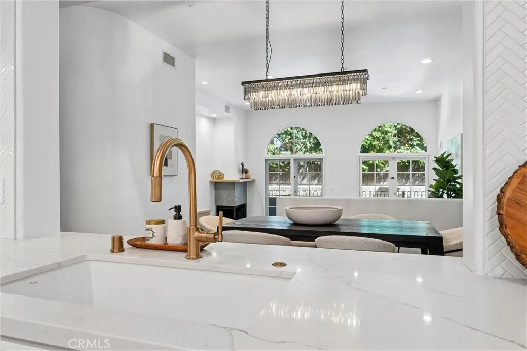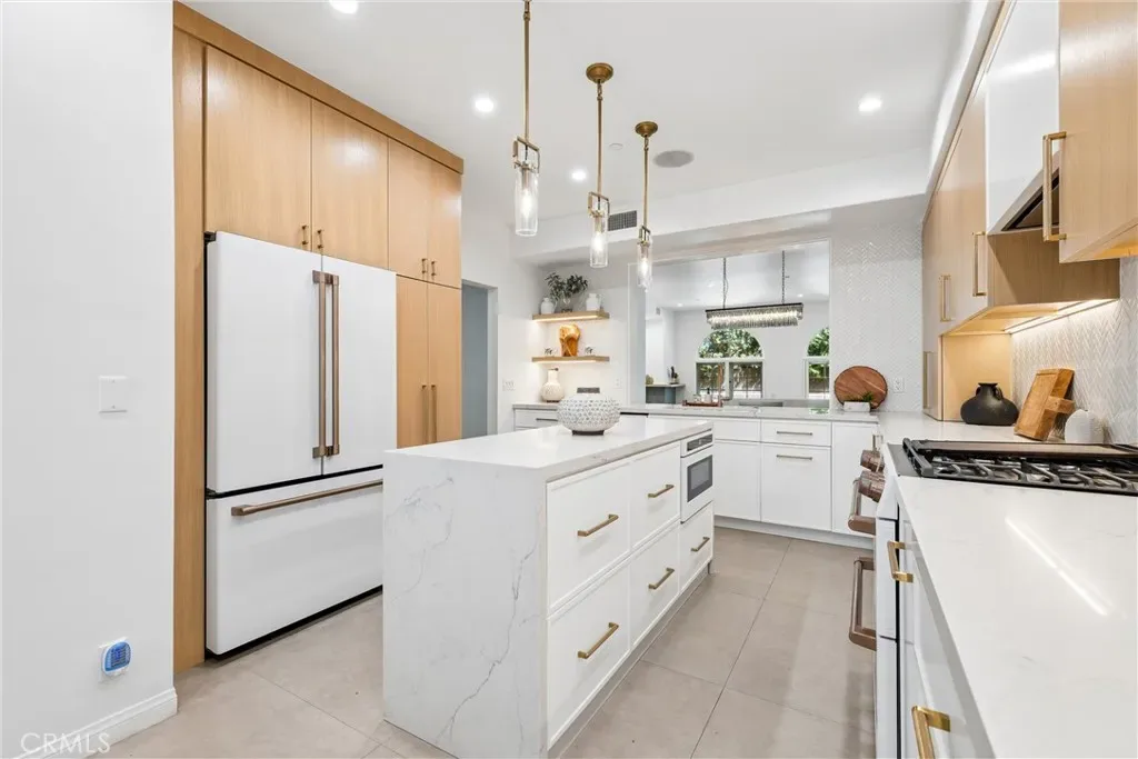 ALL OFFERS ARE DUE APRIL 14TH AT NOON. PREVIOUSLY SOLD IN MULTIPLES AT A MUCH HIGHER PRICE. Spacious, light-filled, and thoughtfully updated, this very rare 2-bedroom plus OFFICE townhome sits on one of Sherman Oaks’ most desirable streets between Stansbury and Hazeltine—just moments from Ventura Boulevard’s premier shopping, dining, and everyday conveniences. A formal entry introduces a well-designed layout featuring in-ceiling surround sound, multiple private patios and balconies, direct access to three parking spaces, and a generous in-unit laundry room updated in 2024. The oversized chef’s kitchen, remodeled in 2022, is a standout with custom wood cabinetry, chevron tile backsplash, tile flooring, Café appliances, a large center island with dining nook, and abundant storage—all enhanced by designer lighting and curated finishes. The dining area flows seamlessly into a bright living room, highlighted by Palladium-style windows and sliding doors that open to a private patio—perfect for outdoor dining and entertaining. A stylish powder room has been tastefully updated with modern fixtures and finishes.