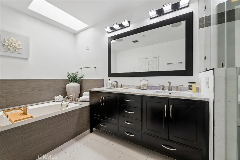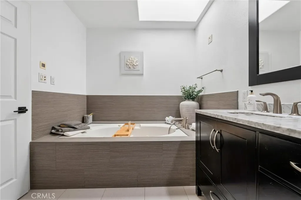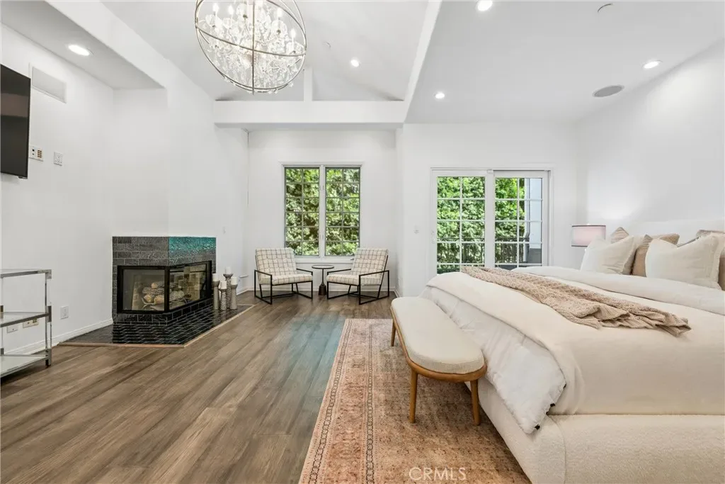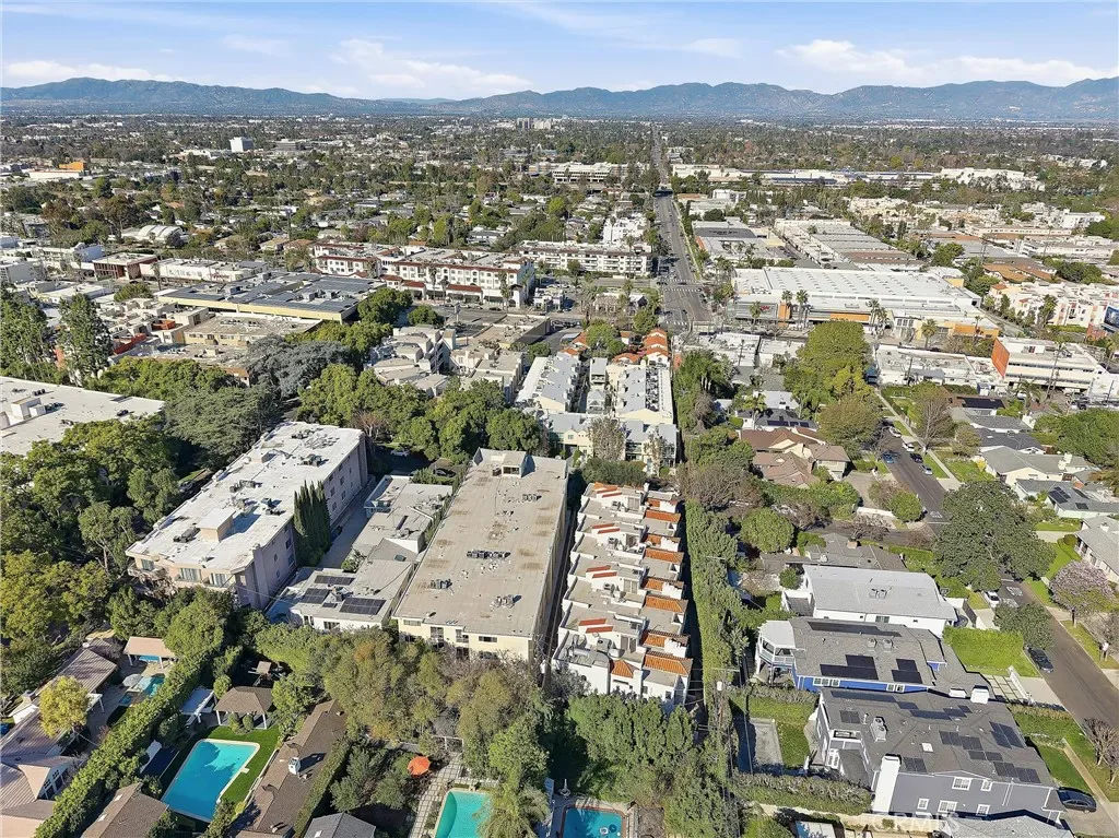 Upstairs, the primary suite offers a peaceful retreat with vaulted ceilings, a sitting area, walk-in closet, and sliding doors leading to a private balcony with treetop views. The spa-like primary bath features dual vanities and a recently remodeled soaking tub. The second bedroom includes its own walk-in closet and an updated en-suite bath. An expansive rooftop deck captures sweeping, nearly 180-degree views—ideal for relaxing or hosting guests. Additional features include a tankless water heater (installed approximately two years ago), convenient access to the 101 Freeway and Westside routes, and close proximity to Ventura Boulevard hotspots, including shopping, dining, Ralphs, and Whole Foods. Set within a meticulously maintained community known for its lush landscaping and strong curb appeal, this home offers comfort, style, and an exceptional location.