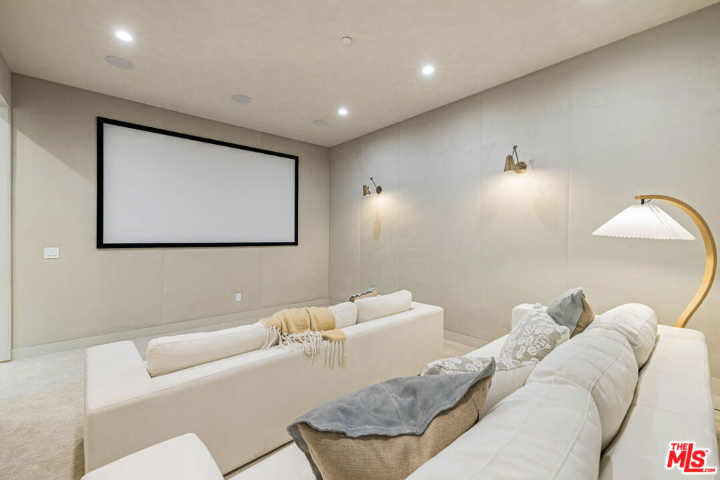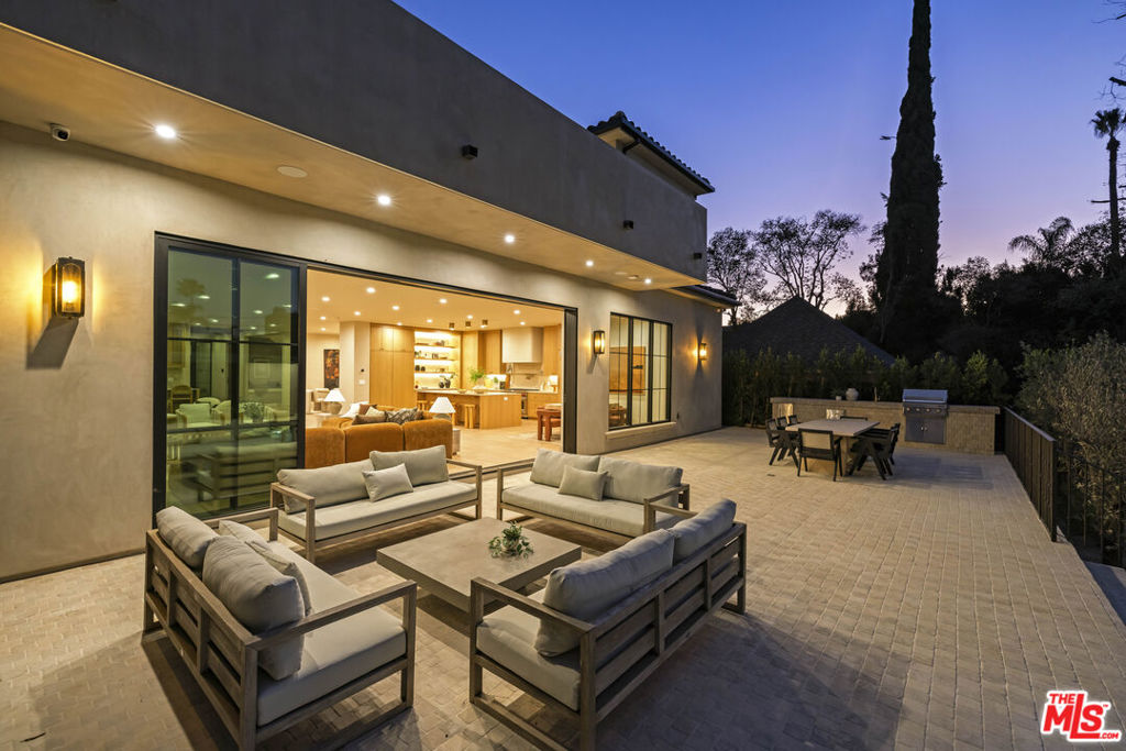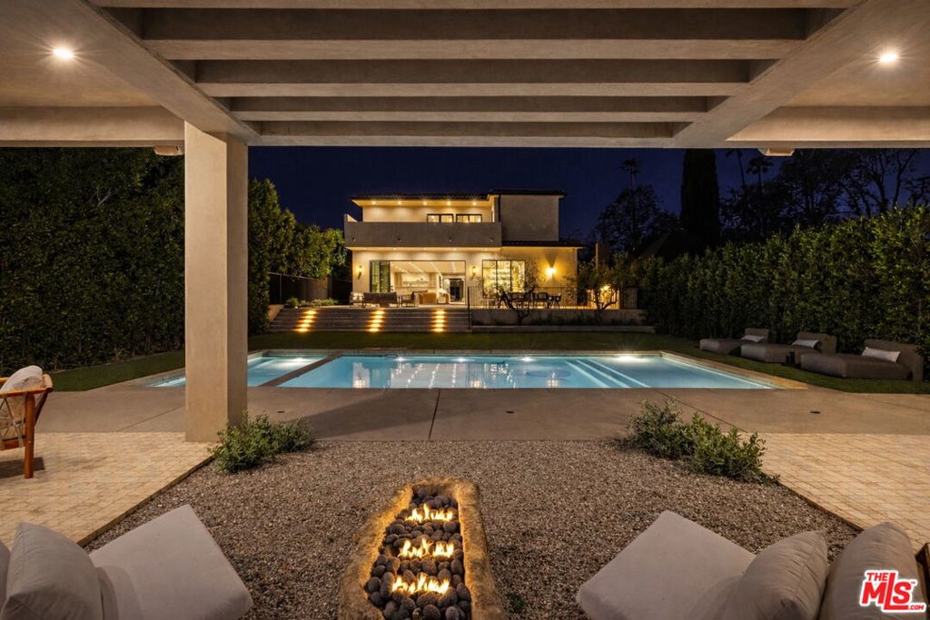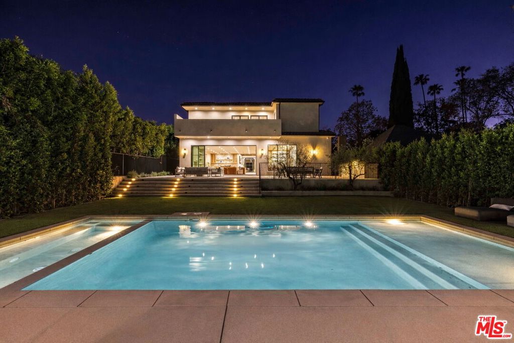 Welcome to Casa Verde, one of the largest and most extraordinary homes ever built south of the Boulevard in Sherman Oaks. Set on an expansive 13,000 sq ft lot, this 5-bed, 7-bath estate blends timeless European influence with high-end contemporary design, featuring hand-applied limewashed walls, a sculptural plaster staircase, and natural light pouring in from every angle. Step through the custom oversized pivot door and you’re immediately met with soaring ceilings and a floor plan crafted for true indoor/outdoor entertaining. A large custom bar sits at the center of the home, creating a stunning focal point and seamless flow into the expansive dining area, where floor-to-ceiling sliders open to a private outdoor sanctuary anchored by a limestone fireplace. The chef’s kitchen features custom white oak cabinetry, travertine counters, and panel-ready appliances that disappear into the design. A hidden butler’s kitchen with its own cooktop, sink, dishwasher, and walk-in pantry keeps prep work tucked away when hosting. The generous family room opens to the oversized backyard with ample patio space, an outdoor kitchen, large pool, two covered cabanas, and a full bathroom. The main floor is completed with a large home theater, office, bedroom and reading nook. Upstairs are 4 additional bedrooms, each with its own en-suite bath and walk-in closet. The oversized primary suite offers a floor-to-ceiling stone fireplace, two balconies, an expansive walk-in closet, and a private bonus room ideal as a yoga studio, nursery, or second closet. The spa-like bathroom features a large zellige-tiled rain shower, freestanding tub with mountain views, makeup vanity, and dual water closets.Tucked in an exceptional walkable pocket, Casa Verde is moments from some of the city’s best restaurants and coffee shops, Anajak Thai, Bacari, The Blvd, Cream, and more, as well as The Buckley School. This is a rare opportunity to own a statement property defined by scale, design, and craftsmanship.