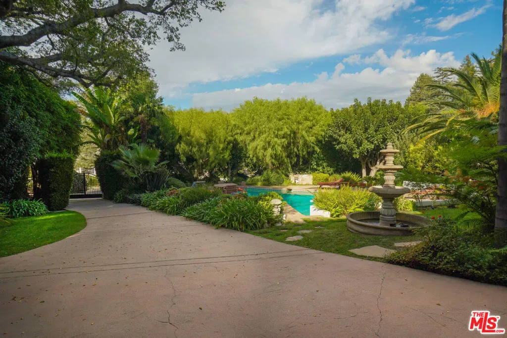 Prepare to be enchanted by the timeless elegance and grandeur of this south of the blvd estate. Character filled 5BR+5.5BA Spanish is set elegantly on its own knoll and features over 17,000 sqft of majestic grounds. The stunning ultra private property is hedged and gated, encompassing a mostly flat street to street lot with access from both Valley Vista and Roblar Pl. Emanating classic charm, the living room showcases soaring beamed cathedral ceilings, beautiful archways and a charming fireplace. Expansive paned windows bring an abundance of natural light. The home has an inviting blend of elegance and functional design with a dining room and great room adjacent to the kitchen, that lends itself to comfortable living and dinner parties. Both rooms feature french doors opening to a large patio overlooking the stunning grounds and views. The spacious chef’s kitchen with center island is equipped with top-of-the-line stainless steel appliances, including a Viking stove with double oven, an additional built-in double oven, Subzero refrigerator and two sinks. The primary suite offers a peaceful retreat with french doors out to its own balcony, a fireplace with built-ins and three walk-in closets. Also included is a separate room perfect for a home office. The primary bath has a jacuzzi tub, oversized shower and double sinks. An additional living space is the downstairs family room which has double French doors leading out to a covered patio and the ensuing lush grounds. It includes a wall of picturesque windows with plantation shutters and has bar with a cozy seating area. With over 6,500 sqft this immense property includes a gym area, sauna, laundry room, dumb waiter, has mostly hardwood floors and three wood burning fireplaces. A long driveway leads from the gated entrance up to the property and its three car garage. The lush, tropical grounds include a pool, multiple patios, extensive rolling lawns, a fountain, three different kinds of palm trees, and a myriad of other gorgeous trees and flowers. This property is a grand estate from a bygone era. It’s conveniently positioned just steps from Ventura Blvd and all its vibrant shops and restaurants – yet still a sanctuary, nestled in its own peaceful oasis. This is a one-of-a-kind property for those who value privacy and quality of life.