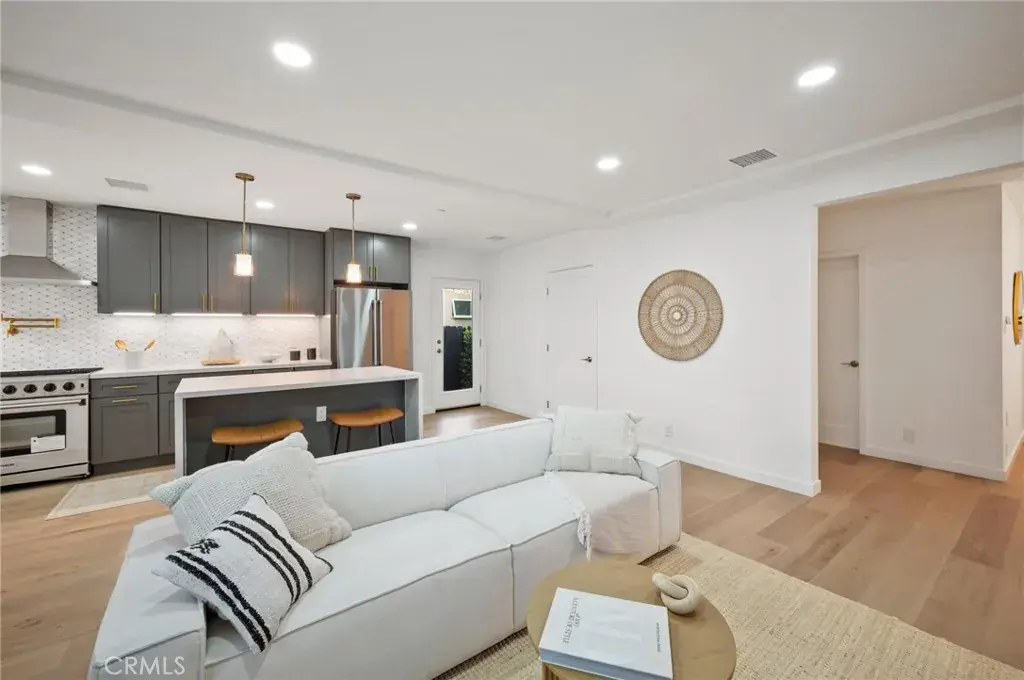 Tucked away on a lush, tree-filled lot, this modern retreat offers the perfect balance of privacy and resort-style living. A remote-controlled iron gate opens to reveal a beautifully reimagined 5-bedroom, 4-bathroom home showcasing timeless design and high-end upgrades throughout. Inside, the open-concept floor plan is anchored by White Oak hardwood floors and a sleek designer kitchen with quartz countertops, under-lit cabinetry, matching Thor appliances, and a built-in three-temperature wine refrigerator. The expansive primary suite overlooks the serene backyard and features a spacious walk-in closet along with a spa-inspired ensuite highlighted by dual sinks and a curb-less, zero-entry shower. Three additional designer bathrooms echo the same attention to detail with walk-in showers and luxury finishes. Step outside to your private paradise: a brand-new sparkling pool shaded by mature trees and complemented by a resort-style cabana. Designed for entertaining, the cabana is complete with an outdoor kitchen, built-in Spires BBQ, dual-temperature wine fridge, mounted TV, overhead lighting, and a cozy fire pit. Recent upgrades provide peace of mind, including a new roof, HVAC system, water heater, all-new copper and PEX plumbing, smooth stucco exterior, stamped concrete driveway, and low-maintenance synthetic turf in both the front and back yards. A rare blend of sophistication, comfort, and modern California living, this home is a true retreat designed for both relaxation and entertaining.