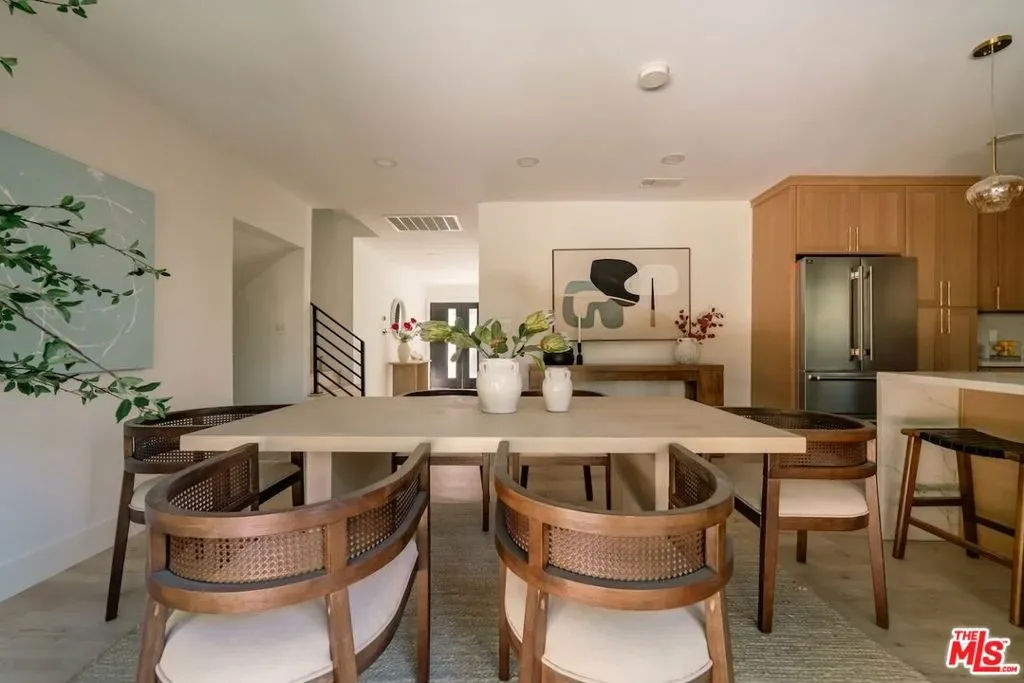 Perched in the coveted hills of Sherman Oaks, this beautifully updated residence offers privacy, style, and effortless California living. Surrounded by hillside tranquility, the home feels like a private retreat while remaining just minutes from the Westside and the best of Sherman Oaks. Bathed in natural light, expansive windows and large sliding doors create a seamless connection between the living spaces and the outdoors. The open concept layout flows effortlessly between the kitchen, dining, and living areas, creating an inviting environment ideal for both everyday living and entertaining. At the heart of the home, the kitchen showcases sleek finishes and a spacious peninsula designed for gathering and conversation. The primary suite serves as a serene retreat with a spa inspired bathroom featuring a walk in shower and elegant vanity, generous closet space, and a private oversized balcony ideal for morning coffee or sunset views. Two additional bedrooms offer flexibility for family, guests, or a dedicated home office. Designed for true indoor outdoor living, the backyard features a refined lounge area framed by manicured ficus hedging, creating a private and tranquil setting that extends the home’s modern aesthetic. Additional highlights include a spacious two car garage with epoxy flooring and an expansive driveway offering generous parking. Ideally located just minutes from Ventura Boulevard’s premier dining, shopping, and entertainment and conveniently positioned for access to the Westside, this is an exceptional opportunity to experience modern hillside living in one of Sherman Oaks’ most desirable neighborhoods.