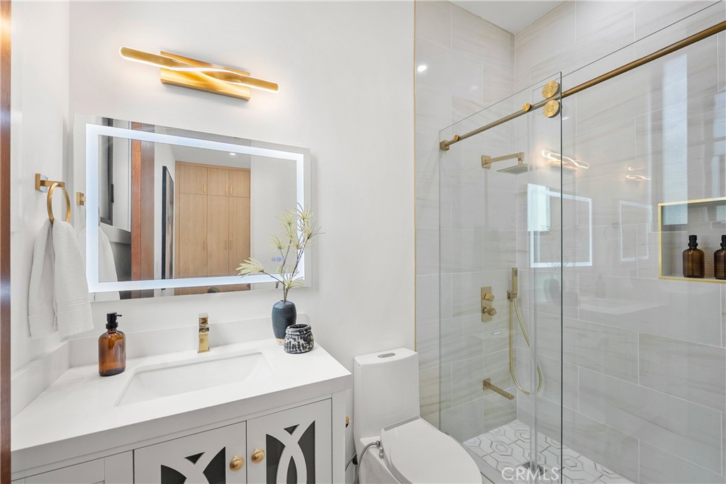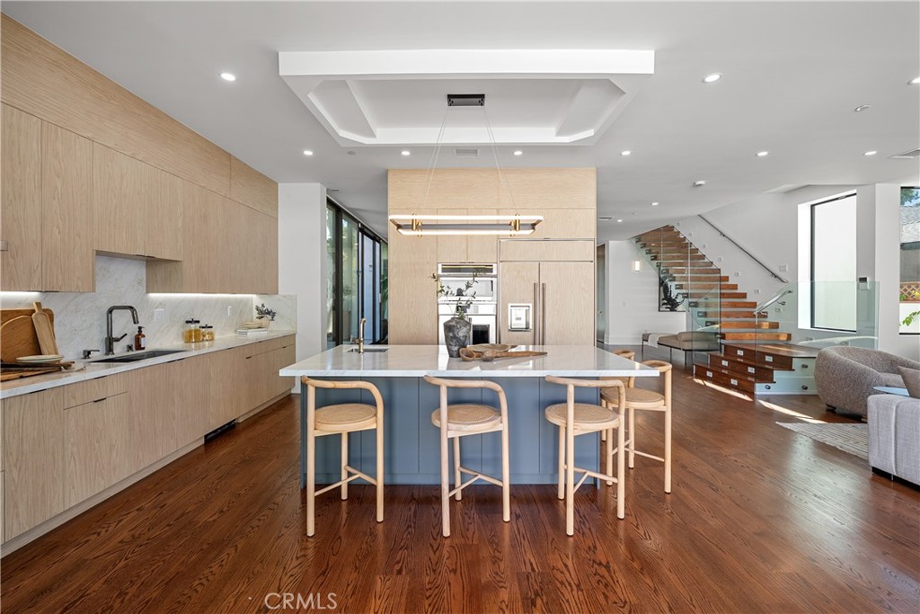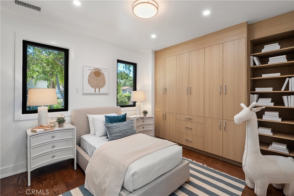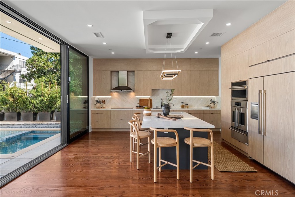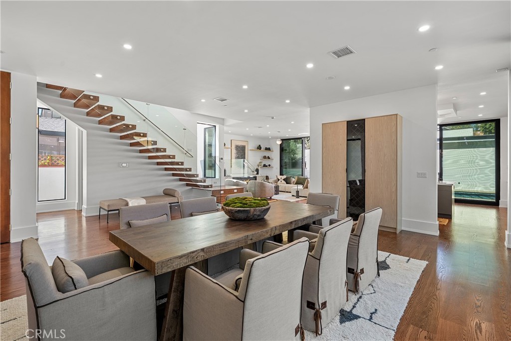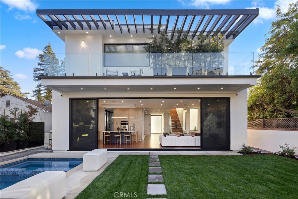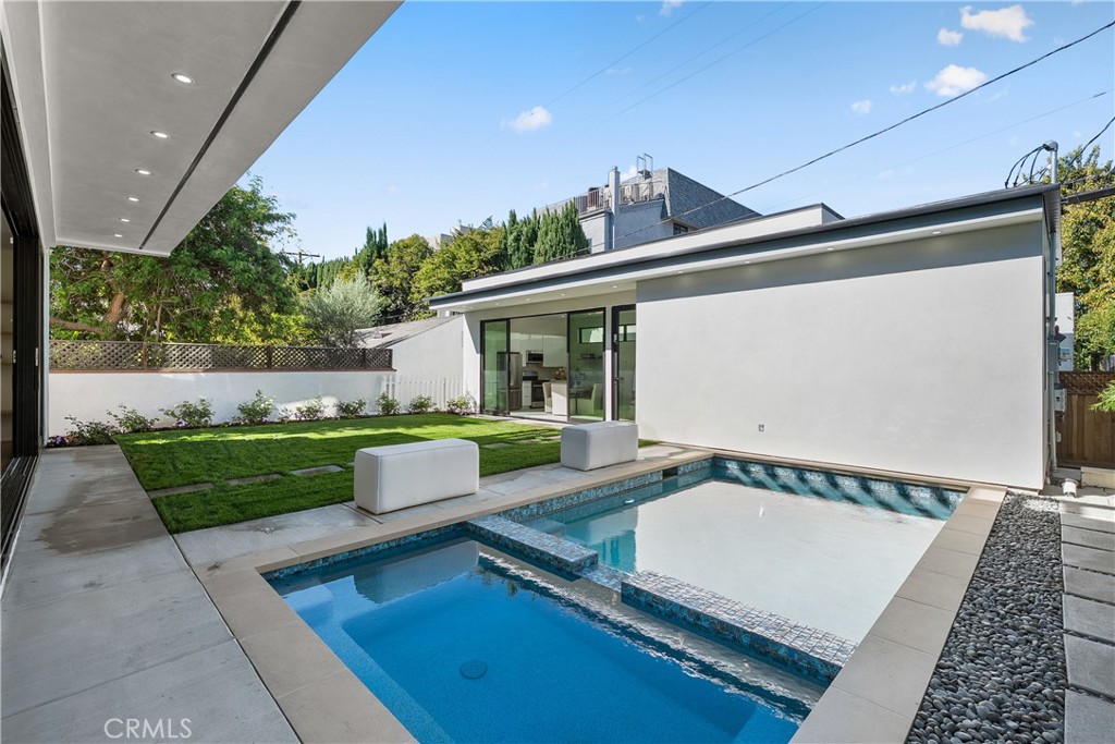 Situated South of the Boulevard on one of the most desirable streets in Sherman Oaks, this newly constructed gated estate offers a 5-bed, 6-bath main house and 1-bed, 1-bath ADU. Designed for modern living, the bright and airy open-concept floor plan is highlighted by lofty ceilings and walls of glass that flood the space with warm natural light. A culinary enthusiast’s dream, the gourmet kitchen comes equipped with top-of-the-line Monogram appliances, quartz countertops and a large island with bar seating. The spacious family room features a sleek fireplace and floor-to-ceiling sliding glass door that spans into the kitchen, seamlessly extending your living space outside for true indoor-outdoor living. Head outside to your serene backyard retreat, where you can take a refreshing dip in the sparkling pool/spa, entertain guests in style or relax in total tranquility. Rounding out the main level is a formal living/dining room with a built-in wine cabinet and additional oversized sliding glass door that opens to a side courtyard, along with an ensuite bedroom and powder bathroom. Ascend the floating staircase to find four generously sized ensuite bedrooms and a dedicated laundry room. Unparalleled luxury awaits you in the expansive primary suite, which boasts a private patio, custom walk-in closet and lavish ensuite bathroom, complete with a soaking tub, oversized rainfall shower, smart toilet and double vanity. At the rear of the property, a versatile 1-bed, 1-bath ADU with a living room and full kitchen provides the perfect space for extended family, guests, an office or home gym – the possibilities are endless. Additional highlights include solid hardwood floors, a security system, central vacuum, high end Fleetwood pivoting front door, two-car garage with a frameless glass door and a gated driveway. Perfectly positioned in the heart of Sherman Oaks, this property is only moments away from trendy restaurants and boutique shops found along Ventura Boulevard, and offers easy access to the Valley, Westside, 101/405 freeway and so much more.