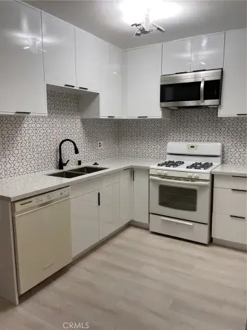 Location, Location, Location. 2 Bedrooms and 2 baths condo unit in the hear of Sherman Oaks. The property is complete remodeled with new laminated hardwood flooring throughout. New kitchen with all new kitchen appliances and fixtures, granite kitchen counter tops, new kitchen cabinets. New baths with all new fixtures. Recess lights, new interior paint. Master suite, balcony overlooks Van Nuys Middle School. 32 unit complex, HOA includes pool, sauna, spa, laundry facilities. Secure underground 2 car tandem parking spaces. Must see to appreciated. Won’t LAST!!