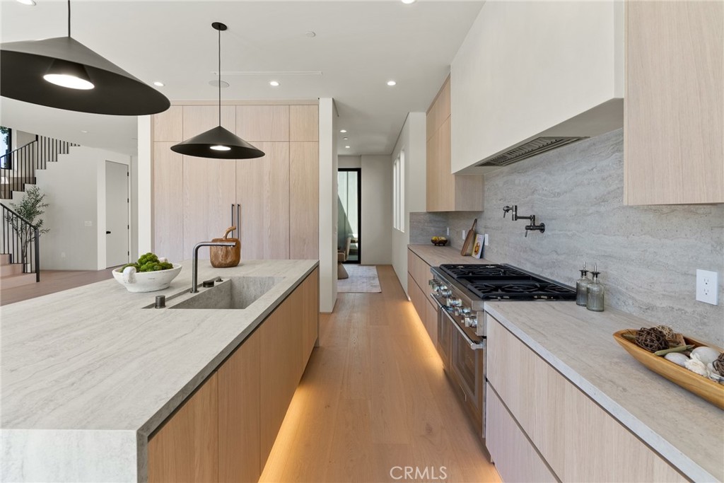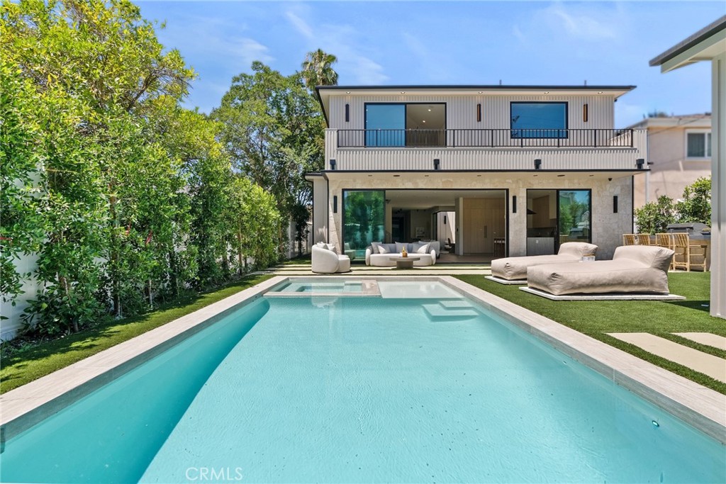 Welcome to this exceptional newly built 2025 gated estate, crafted by one of Sherman Oaks’ most acclaimed builders and designers, renowned for their visionary architecture, superior craftsmanship, and sophisticated blend of high-end materials.Situated on a serene street lined with luxury homes, just moments from Ventura Boulevard, this stunning residence sets a new standard for luxury living. Designed with both comfort and elegance in mind, the main house features 5 beds & 5.5 bathrooms, including a detached guest house. The open-concept floor plan is ideal for modern living, featuring wide-plank golden oak flooring, warm Venetian plaster walls, & expansive floor-to-ceiling windows flood the space with natural light. A dramatic family room with a sleek custom fireplace, & oversized pocket sliding doors that open to the backyard oasis. The designer chef’s kitchen is a true centerpiece, featuring custom cabinetry, high-end appliances, porcelain countertops, and a statement island with integrated stone sink & premium fixtures, blending functionality with artistry.The formal dining room is elevated by a statement wall & a designed wall wine holder adds a bold touch of sophistication and convenience for entertainers. The first-floor ensuite is perfectly positioned for use as a home office, wellness or guest room. A dramatic powder room with a floating stone sink adds a bold design element. Upstairs, soaring ceilings frame three generously sized ensuite bedrooms, shared front balcony and all with access to an oversized patio. The primary suite is a luxurious retreat, with a stunning fireplace, a designer wall finished in custom textured Venetian plaster infused with relaxing Tulum-inspired vibes, custom built-ins, a walk-in closet, and a private balcony. The spa-like bathroom boasts a soaking tub, dual rainfall showers & vanities. Step outside to a resort-style backyard with lush landscaping, a sparkling pool & spa, outdoor kitchen with b.b.q, a detached enclosed cabana equipped with a full bathroom & a kitchenette designed for guests, an office/pool house and effortless entertaining & relaxation. The Crestron smart home is equipped with built-in speakers, security cameras, and ambient LED lighting throughout. Located in a highly sought-after Sherman Oaks neighborhood, easy access to the area’s best shops, dining, Kester magnet school and the 101 & 405 freeways. Own this rare opportunity, a one-of-a-kind 2025home that perfectly embodies both luxury & lifestyle.
