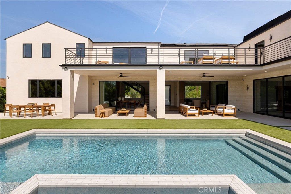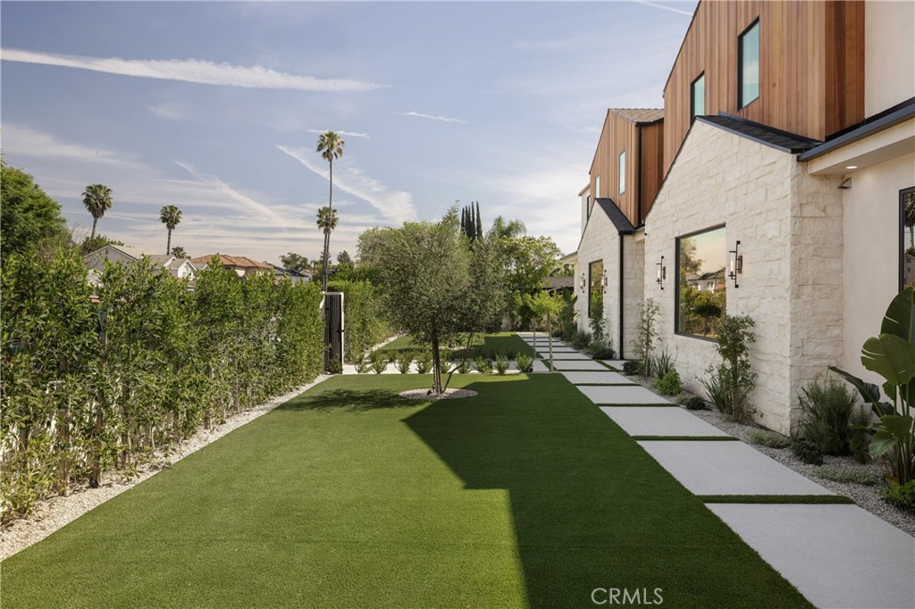 Situated behind private gates on a sprawling 9,000+ sq. ft. corner lot, this newly constructed architectural estate boasts an attached 1-bed, 1.5-bath ADU. Designed for modern living, the open-concept main level flows seamlessly from the spacious living and dining area into the gourmet chef’s kitchen, outfitted with professional-grade appliances, sleek custom cabinetry, a massive island and walk-in pantry. Two oversized sliding glass doors effortlessly extend the living space to the covered patio, creating a seamless indoor-outdoor living experience. The backyard is a true entertainer’s retreat, showcasing a resort-style pool and spa, fully equipped outdoor kitchen and privacy hedges that surround the property. Completing the main level is an ensuite bedroom and chic powder bathroom with a one-of-a-kind stone sink. On the upper level, you’ll find four generously sized ensuite bedrooms, a dedicated laundry room and spacious loft area that leads out to an expansive balcony. The luxurious primary suite features a custom walk-in closet and sumptuous ensuite with a soaking tub, large glass-enclosed shower and double vanity. The ADU offers exceptional versatility with its own private entrance, a living room, full kitchen, one bedroom and two bathrooms, perfect for guests, extended family or as additional living space. Further highlights include high ceilings throughout, a two-car garage and fully integrated smart home system that manages lighting, climate, audio and security. Ideally located within the top-rated Kester Avenue Elementary School District, just moments away from Ventura Boulevard’s premier shops and restaurants, as well as the Sherman Oaks Galleria.