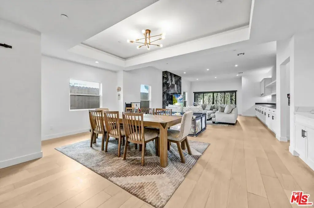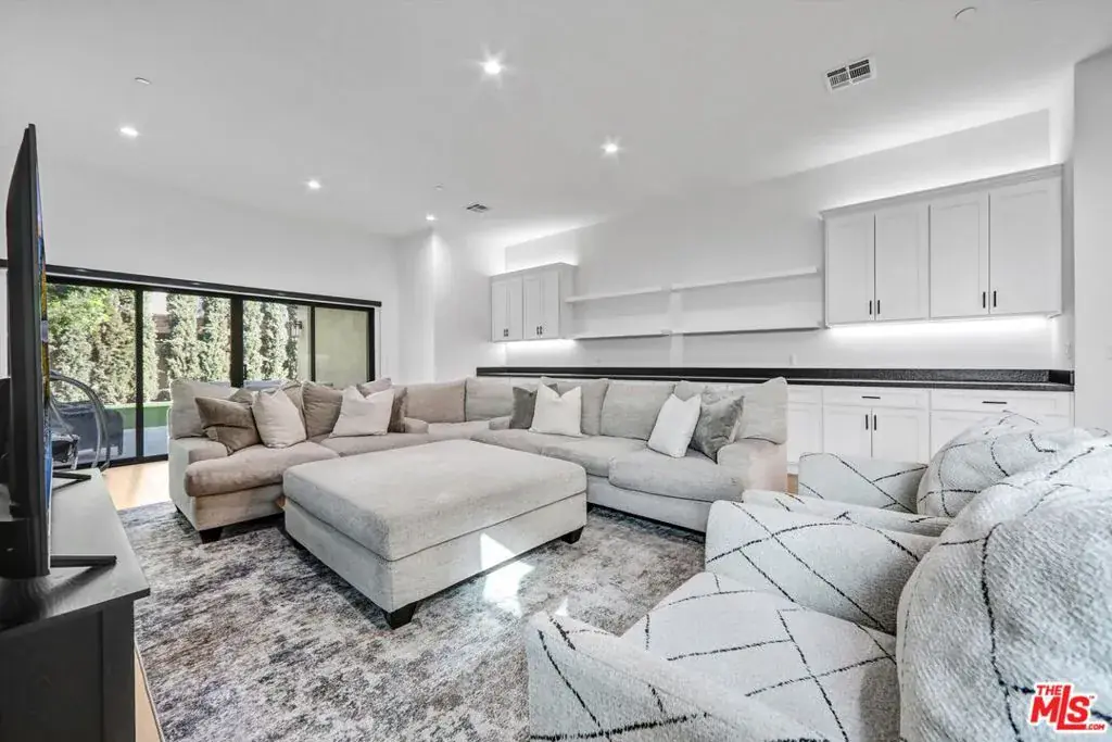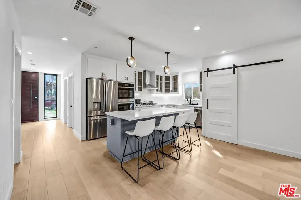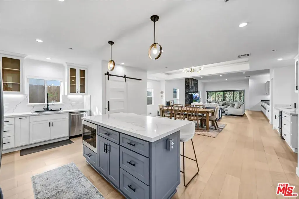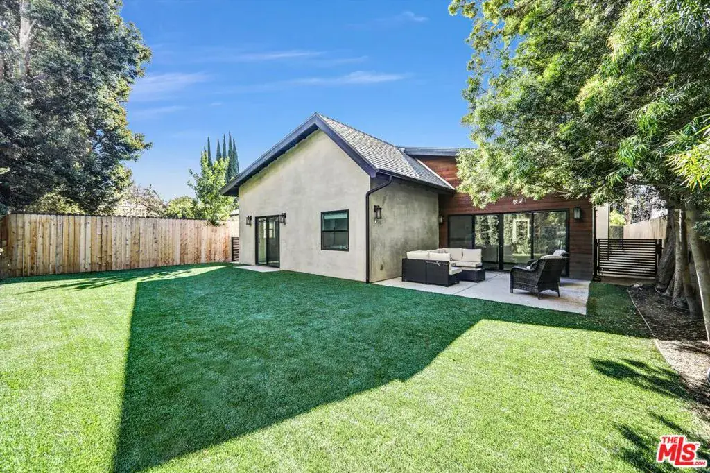 A beautifully reimagined contemporary one story residence offering over 2,800 square feet of thoughtfully designed living. Expanded and renovated to feel like new construction, this four bedroom home combines open concept design with practical upgrades that add lasting value. Each bedroom features its own en suite bath, along with a separate powder room for guests. Just off the entry, a private suite provides flexibility for a home office, guest retreat, or multigenerational living. The open great room is anchored by a chef’s kitchen with stainless steel appliances and an oversized center island that flows seamlessly into the dining and living areas. Soaring ceilings and custom built-ins with integrated lighting create architectural presence, while expansive sliding doors open to the backyard for true indoor outdoor living. The exterior has been enhanced with low maintenance turf in both the front and rear yards, newly landscaped grounds, and a fully replaced backyard fence alongside of the house perimeter for privacy. Newly added cement walkways along the side yards improve accessibility and lead to a rear pedestrian gate, offering added convenience and functionality.The primary suite serves as a private retreat with cathedral ceilings, a custom walk-in closet, spa inspired bath with dual vanities and a freestanding soaking tub, plus a dedicated office nook overlooking the yard.Beyond aesthetics, the home has been meaningfully upgraded with a new roof, new furnace, and drainage improvements including a sump pump system, providing added confidence and peace of mind. Wide plank Nordic Brazilian hardwood floors, recessed LED lighting, premium fixtures, and automated irrigation complete the offering.Located near highly regarded Kester Elementary and just minutes from the Westside, LAX, and the best dining and shopping in Sherman Oaks, Encino, and Studio City, this is a turnkey opportunity in one of the Valley’s most desirable neighborhoods.