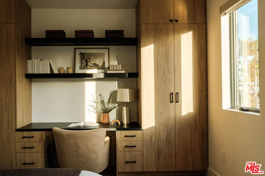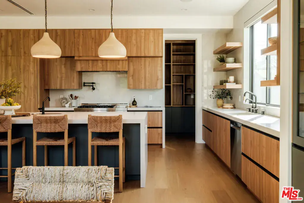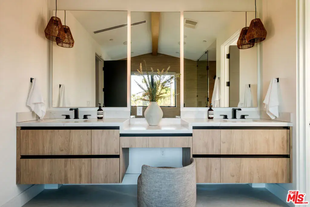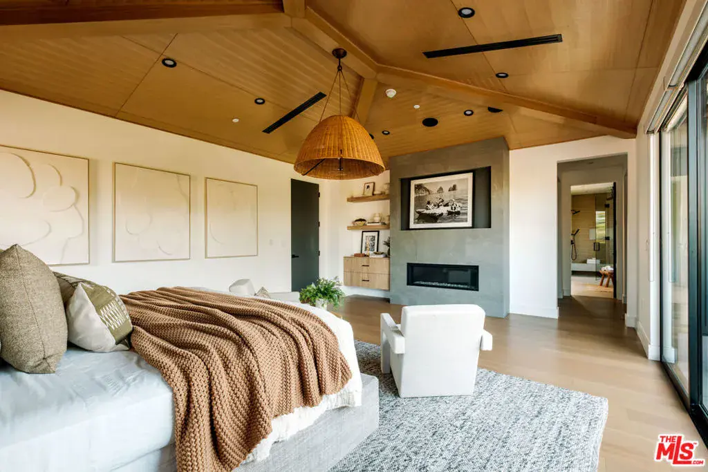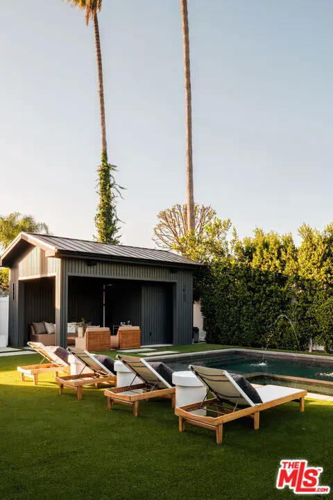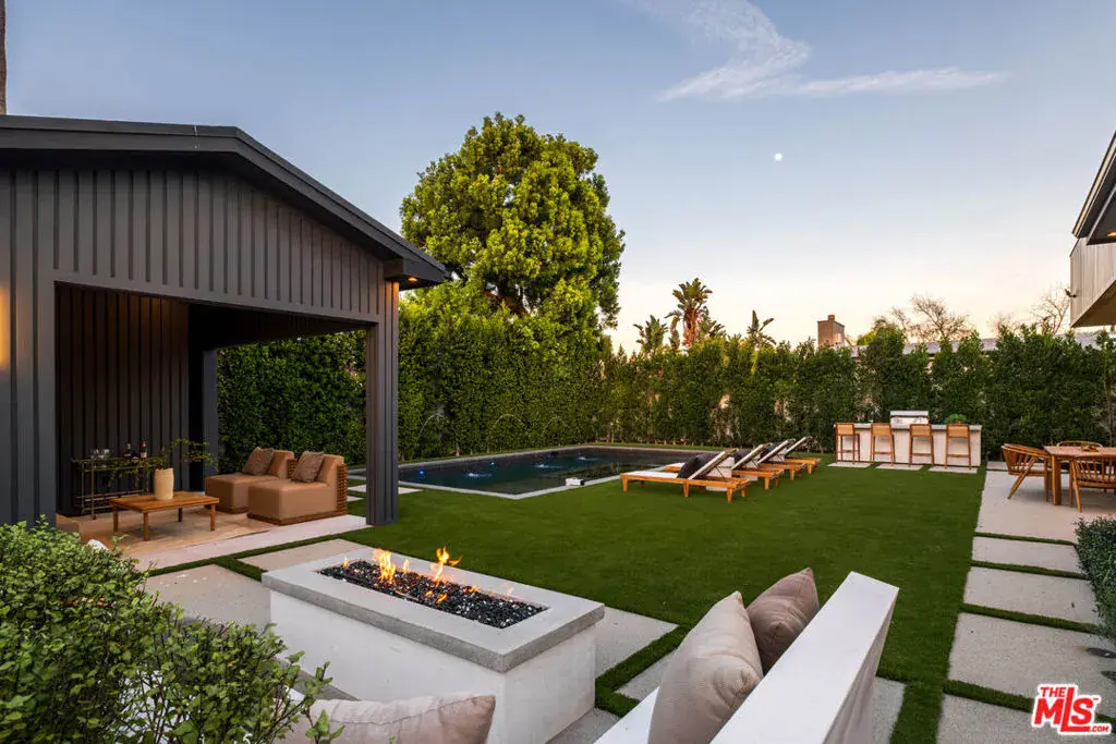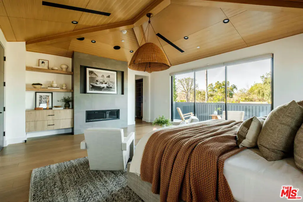A masterfully crafted modern farmhouse where organic elegance and seamless indoor-outdoor living define Sherman Oaks luxury. Welcome to 15473 La Maida, a stunning newly constructed modern farmhouse, privately set on a tranquil street in one of Sherman Oaks’ most desirable neighborhoods. Behind gates and striking curb appeal, a grand covered entry welcomes you with soaring ceilings, bespoke designer lighting, and wide-plank European oak floors throughout. The main level unfolds with an elegant living room anchored by a statement stone fireplace, seamlessly flowing into a formal dining room with custom built-ins. At the heart of the home is a chef’s kitchen designed to impress, featuring a generous center island, quartz countertops, premium stainless steel appliances, and an expansive walk-in pantry. The adjacent family room, complete with custom built-ins and a fireplace, opens through floor-to-ceiling pocket glass doors to create a true indoor-outdoor lifestyle. Upstairs, the romantic primary suite is a peaceful sanctuary, offering a cozy sitting area, fireplace, dual walk-in closets, and a spa-inspired bath appointed with a soaking tub, glass-enclosed rain shower, dual vanities, dedicated makeup seating, and private water closet.Designed for entertaining, the resort-style backyard showcases a sparkling pool and spa, fire pit, built-in BBQ and a poolside cabana complete with its own bathroom. Additional highlights include an upstairs laundry room, Control4 smart home integration, and a two-car garage. An exceptional opportunity to enjoy refined modern living just moments from premier shopping, fine dining, and all that Sherman Oaks has to offer.