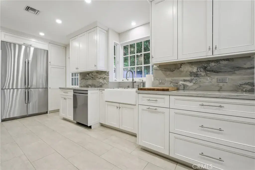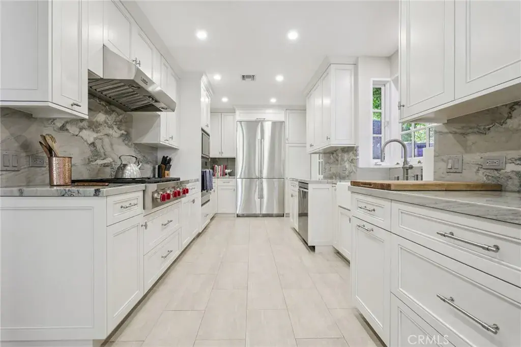 Beautiful, spacious home in the Sherman Oaks hills. The formal entry leads to a large living room with a cozy fireplace. The family and living rooms both open to the very private back yard. There is a formal dining room that can accommodate large gatherings. The chef’s kitchen has been redone and features stainless steel appliances including a 6 burner Wolf cooktop, a Wolf oven with convection, an oversized refrigerator and freezer, quartzite counters and a lovely built in breakfast area. There are 3 bedrooms, 2 ½ bathrooms and a laundry area on the first floor. The primary suite is on the second floor and includes a large bedroom with fireplace, an en-suite bath, 2 walk-in closets, and has an enclosed balcony overlooking the yard. The home has hardwood floors, recessed lighting, plantation shutters and ample cabinet and closet space. In the backyard there is a fenced-in pool, tiled patio with covered seating area, a large outdoor dining space and a greenhouse making this beautiful home perfect for entertaining indoors and out. The home is conveniently located with easy access to the Westside and the San Fernando Valley.