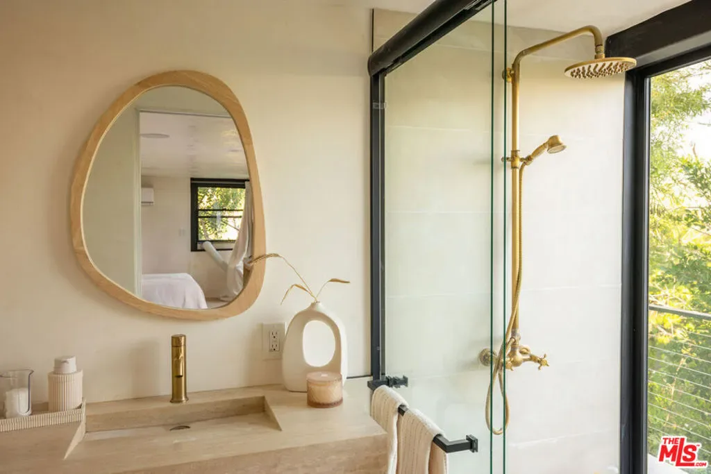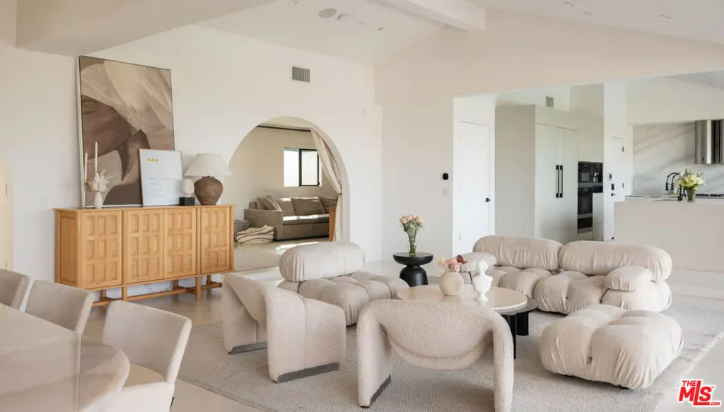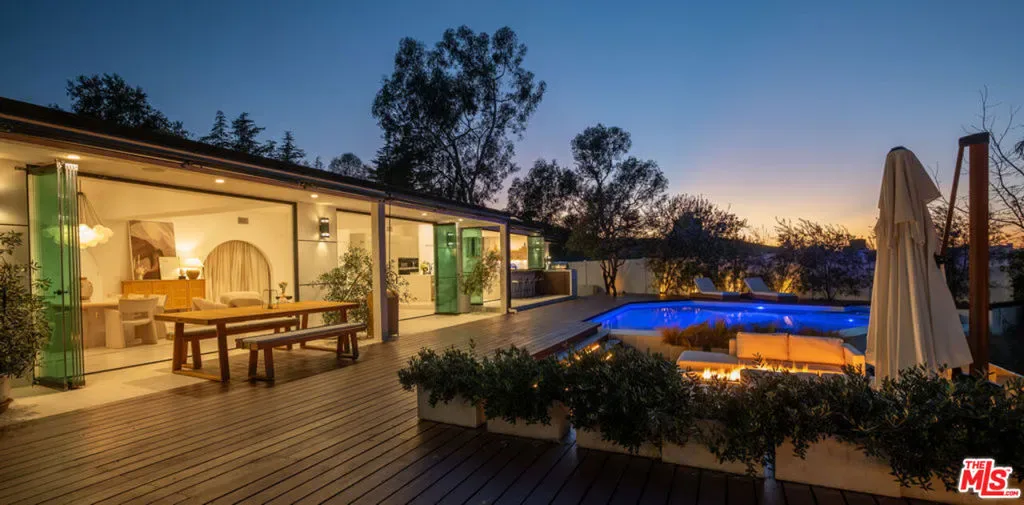 Introducing “The Scadlock MCM,” an exceptionally renovated Mid-Century Modern residence ideally positioned on one of Sherman Oaks’ most coveted view streets, offering breathtaking north-facing valley vistas enjoyed from nearly every vantage point. Rebuilt from the studs with meticulous craftsmanship, this architectural retreat blends timeless designer finishes with modern luxury and thoughtful functionality. Dramatic 14-foot vaulted ceilings with skylights flood the home with natural light, while expansive large-format Italian flooring and custom walnut built-ins create a warm modern aesthetic throughout the living spaces. The chef’s kitchen features premium Miele appliances including dual stovetops, double ovens with steam capability, warming drawers, and a built-in espresso system, complemented by a Sub-Zero refrigeration system and striking Neolith Spanish stone waterfall countertops. Designed for privacy and comfort, the home features SolidCore accordion glass doors, sound-insulated interior walls, and glass hallway doors separating the sleeping quarters from the main entertaining areas. Outdoor living showcases a saltwater infinity-edge pool with Baja shelf, wood decking, fire pit lounge, and outdoor kitchen, surrounded by mature citrus trees. A private detached guest house evokes the feeling of a Bali treehouse retreat, ideal for guests, studio, or wellness space. A dedicated fitness room frames the valley views while a fixed glass panel into the garage creates a striking architectural car gallery moment. Additional amenities include 400-amp electrical service, Lutron smart lighting, Sonos audio, EV charging capability, and advanced fire protection safeguards featuring roof-mounted sprinkler systems and perimeter fire defense protection. Located within the award-winning Roscomare Road Elementary School District and close to the premier dining, shopping, and entertainment the Valley has to offer, with convenient access to the Westside and Beverly Hills. Truly one of the most compelling offerings in the area at this price point.