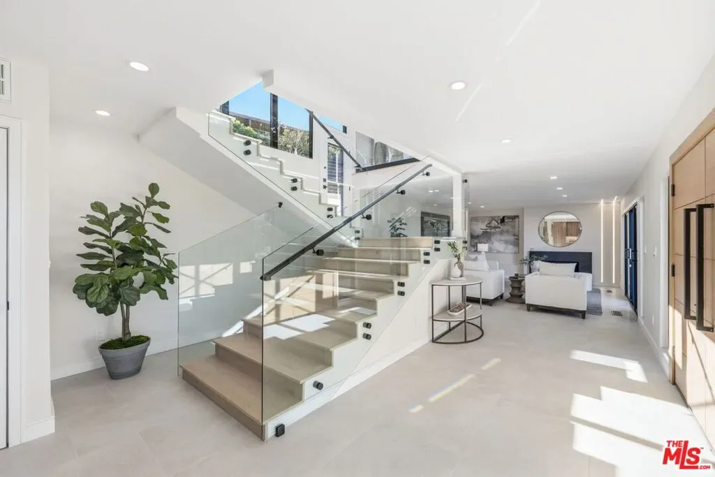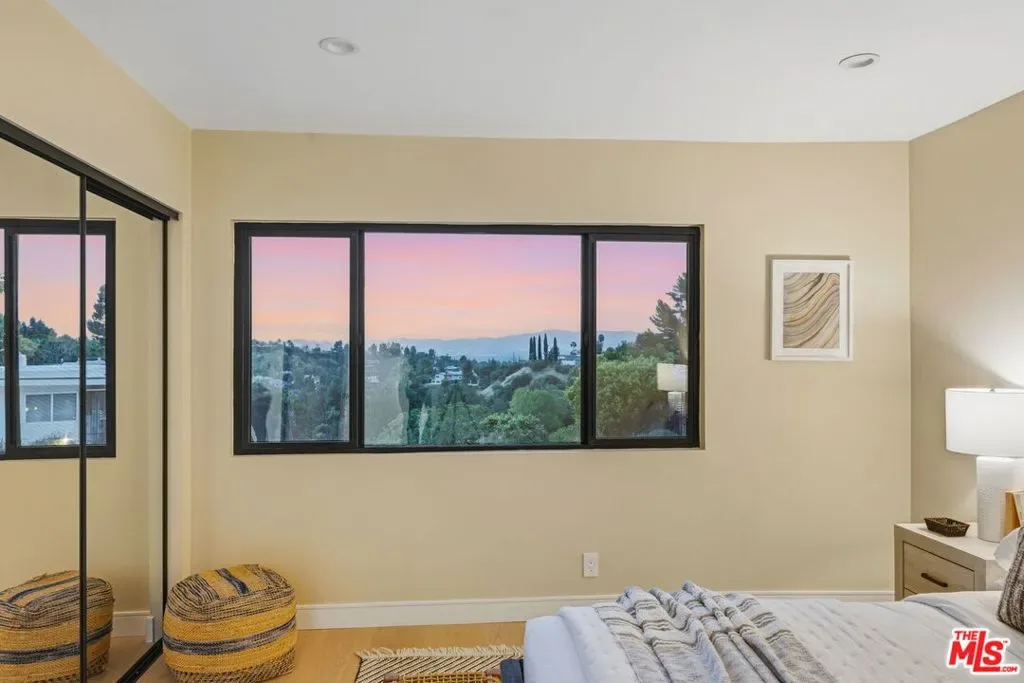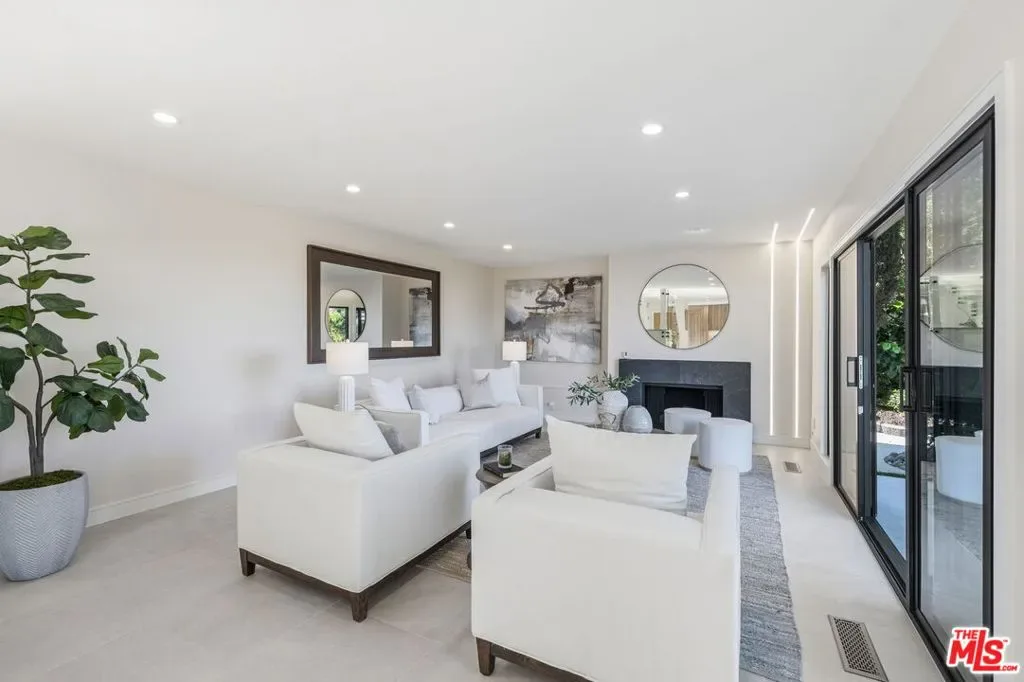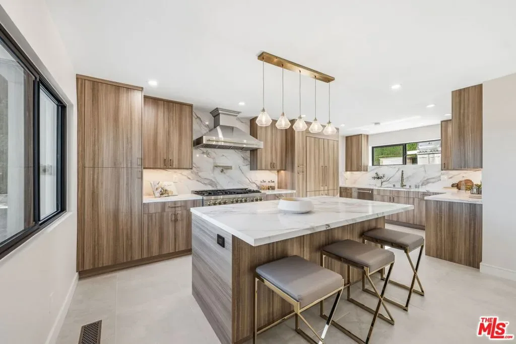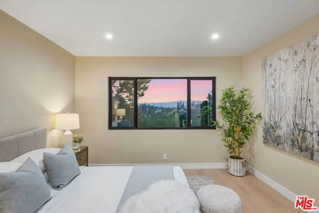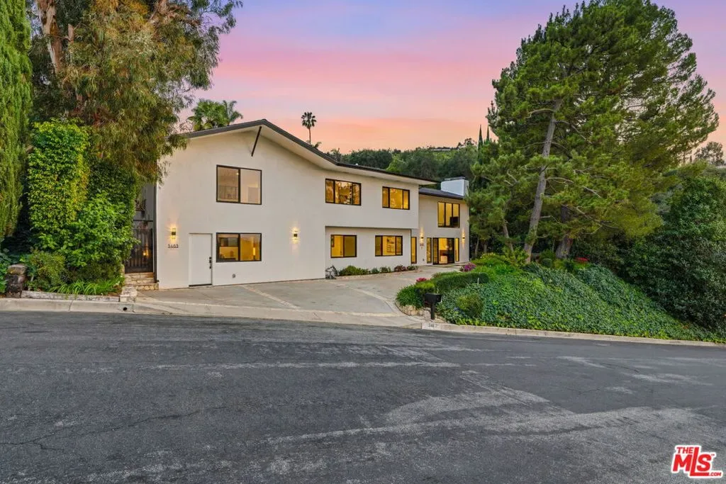 Perched high above the Valley in the prestigious Royal Woods of Sherman Oaks, 3465 Valley Meadow Road offers sweeping panoramic city and mountain views that captivate by day and shimmer with sparkling lights by night. Completely reimagined from the ground up, this exceptional two-story residence has undergone a meticulous, full-scale renovation blending architectural integrity, structural precision, and elevated modern design. Behind its stately presence and wide frontage lies a thoughtfully engineered home featuring seamless open-concept living experience, a newly constructed staircase, brand-new roof, and new plumbing and electrical systems. Integrated high-voltage capacity for fast EV charging. The main residence offers 3 bedrooms and 3 bathrooms, each space filled with natural light and framed by brand-new floor-to-ceiling glass panels that capture breathtaking valley views. The heart of the home is a stunning open-concept kitchen and living area designed for effortless entertaining and everyday comfort. The chef’s kitchen features high-performance appliances, delivering both functionality and cohesive modern design. Spa-inspired bathrooms and custom vanities, curated by Los Angeles design experts, combine clean architectural lines with warm, earthy textures creating refined yet inviting spaces. Adding incredible flexibility and value, the property also includes an attached JADU -3463 Valley Meadow- complete with its own full kitchen, bathroom and living area with wide windows, plenty of natural light and view. With separate access, it can function independently from the main house ideal for guests, extended family, rental income, or a private office suite. Step outside and experience true California living: expansive outdoor entertaining areas, flat yard space, and panoramic views that stretch across the Valley and surrounding mountains. Surrounded by luxury estates, with convenient Westside access, top-tier schools, and premier shopping and dining nearby, this home offers both privacy and accessibility. Turnkey, thoughtfully designed, and elevated above it all this is a rare opportunity to own a fully transformed residence in one of Sherman Oaks’ most sought-after neighborhoods. Come experience 3465 Valley Meadow Road for yourself.