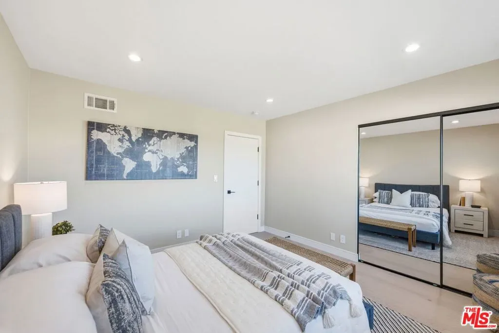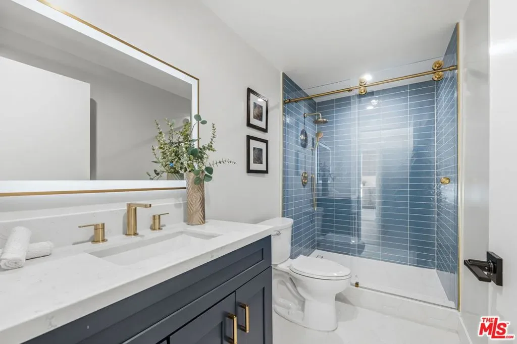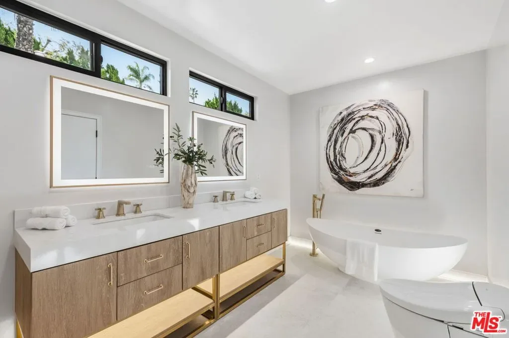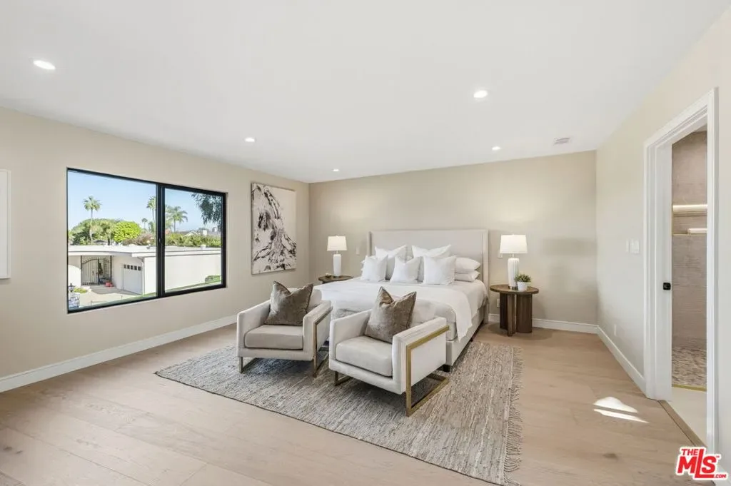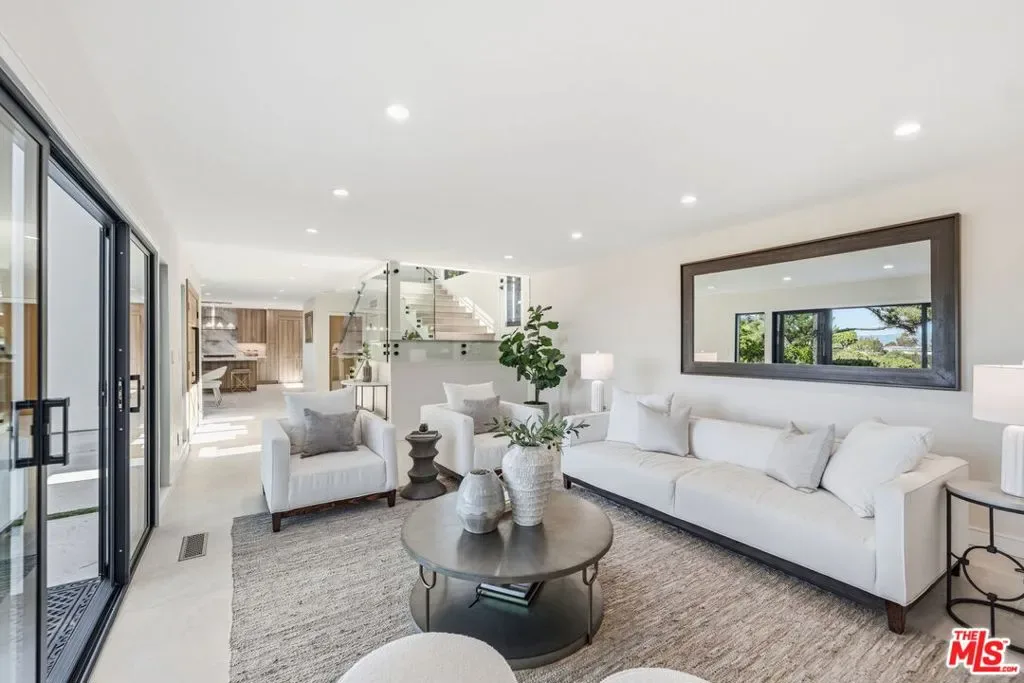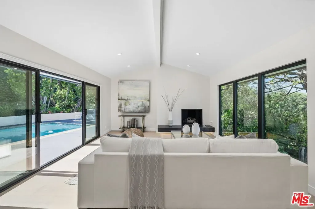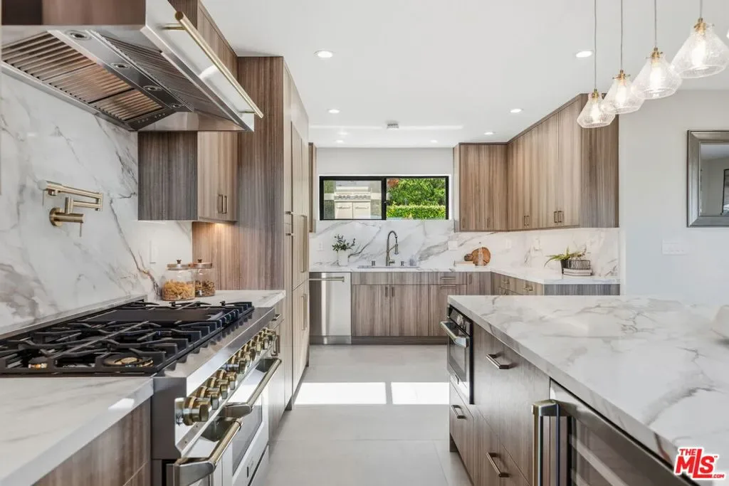 Perched high above the Valley in the prestigious Royal Woods of Sherman Oaks, 3465 Valley Meadow Road offers sweeping panoramic city and mountain views that captivate by day and shimmer with sparkling lights by night. Completely reimagined from the ground up, this exceptional two-story residence has undergone a meticulous, full-scale renovation blending architectural integrity, structural precision, and elevated modern design. Behind its stately presence and wide frontage lies a thoughtfully engineered home featuring seamless open-concept living experience, a newly constructed staircase, brand-new roof, and new plumbing and electrical systems. Integrated high-voltage capacity for fast EV charging. The main residence offers 3 bedrooms and 3 bathrooms, each space filled with natural light and framed by brand-new floor-to-ceiling glass panels that capture breathtaking valley views. The heart of the home is a stunning open-concept kitchen and living area designed for effortless entertaining and everyday comfort. The chef’s kitchen features high-performance appliances, delivering both functionality and cohesive modern design. Spa-inspired bathrooms and custom vanities, curated by Los Angeles design experts, combine clean architectural lines with warm, earthy textures creating refined yet inviting spaces. Adding incredible flexibility and value, the property also includes an attached JADU -3463 Valley Meadow- complete with its own full kitchen, bathroom and living area with wide windows, plenty of natural light and view. With separate access, it can function independently from the main house ideal for guests, extended family, rental income, or a private office suite. Step outside and experience true California living: expansive outdoor entertaining areas, flat yard space, and panoramic views that stretch across the Valley and surrounding mountains. Surrounded by luxury estates, with convenient Westside access, top-tier schools, and premier shopping and dining nearby, this home offers both privacy and accessibility. Turnkey, thoughtfully designed, and elevated above it all this is a rare opportunity to own a fully transformed residence in one of Sherman Oaks’ most sought-after neighborhoods. Come experience 3465 Valley Meadow Road for yourself.