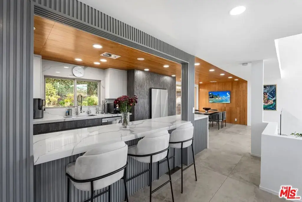 A rare opportunity to acquire a fully remodeled luxury estate in the coveted Royal Woods enclave of Sherman Oaks, where privacy, prestige, and long-term value converge. Set on an expansive 14,112 sq ft lot and offering 3,716 sq ft of refined living, this residence presents a level of quality and craftsmanship that would be exceptionally difficult to replicate at today’s construction and labor costs. Located south of Ventura Boulevard, the property offers a secluded, tranquil setting while remaining moments from the 405 and 101 freeways, Ventura Blvd’s premier dining and shopping, and nearby hiking trails an ideal balance of accessibility and privacy highly sought after by discerning buyers. Completed in 2023, the home has undergone a comprehensive, top-to-bottom renovation, both interior and exterior, featuring extensive designer upgrades including new stucco, electrical, plumbing, flooring, and custom bathrooms. The interiors are defined by soaring ceilings, expansive floor-to-ceiling windows, and a sophisticated European-style kitchen equipped with premium stainless steel appliances designed for both everyday living and elegant entertaining. The thoughtfully curated layout includes a custom entertainment room with elegant built-in bar and karaoke room, an upper-level family room with vaulted ceilings and fireplace, formal dining area, and a luxurious primary suite with a spa-inspired, fully remodeled bathroom. A striking floor-to-ceiling glass-walled gym or executive office adds flexibility for modern living, while guest and master bedroom with breathtaking view of the valley and tastefully renovated bathrooms complete the upper level. The outdoor spaces elevate the estate into a true private retreat designed to entertain big parties, featuring a waterfall, koi pond, covered patio, and a modern pergola with full outdoor barbecue kitchen. The wrap-around front patio offers sweeping valley views, creating a setting ideal for refined entertaining or quiet moments of retreat. Additional features include a dedicated office, whole-house water softening system, in-ceiling sound system throughout, and a comprehensive security and alarm system all contributing to a seamless luxury lifestyle. Properties of this caliber, location, and lot size in Royal Woods rarely become available, making this a compelling opportunity for buyers seeking privacy, turnkey condition, and long-term value in one of Sherman Oaks’ most prestigious neighborhoods. Showings by appointment only. Text the agent to schedule.