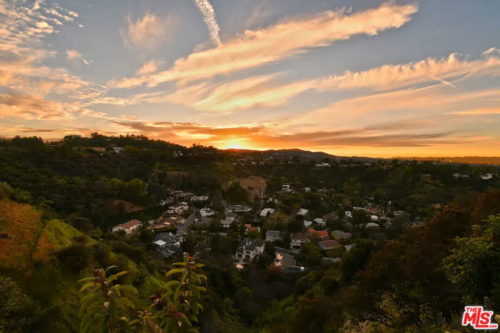 Perched in the prestigious Sky View neighborhood, this California Mediterranean hilltop retreat captures sweeping southwestern views of the Santa Monica Mountains and refreshing ocean breezes. Tucked away on a quiet cul-de-sac adjacent to the Deervale Park wilderness area, the residence has been thoughtfully remodeled to offer exceptional privacy and timeless elegance. A stone-paved entry welcomes you into light-filled interiors featuring wide-plank white oak floors throughout the main living areas. Decorative stained-glass windows add character and charm to the living and dining rooms and continue into the serene primary suite. Nearly every room enjoys stunning views. The expansive primary bedroom boasts an oversized walk-in closet and direct access to the pool and spa. The primary bath is appointed with premium marble and high-end fixtures. The chef’s kitchen features a granite island and countertops, top-tier appliances, and a charming breakfast room that opens to a balcony overlooking Stone Canyon. A fifth bedroom is currently configured as a home gym. Additional highlights include soaring ceilings, wood-burning fireplaces, plantation shutters, and a direct-access garage.