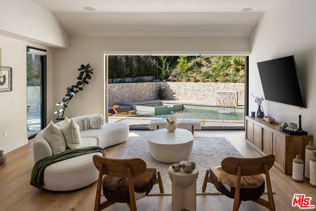 Nestled in the coveted hills of Sherman Oaks, this fully renovated contemporary home offers 4 bedrooms and 3.5 baths with the perfect blend of luxury, style, and functionality. Step through custom double entry doors into an elegant living space highlighted by a stunning travertine porcelain slab fireplace and soaring 11-foot ceilings – wide-plank engineered wood floors flow throughout, while each bathroom showcases a refined Roman clay finish. Expansive Fleetwood sliding doors open to a private resort-like backyard with pool, spa, custom ledger stone throughout, a Pentair system and a full outdoor kitchen including a built-in barbecue, sink, and refrigerator surrounded by mature ficus throughout, ideal for effortless entertaining. This smart home is fully integrated with advanced RTI and ADT systems, featuring upgraded switches, Episode speakers, security cameras, and a premium whole-house audio setup. Thoughtfully designed and move-in ready, this home caters to the most discerning buyers seeking a turnkey, fully furnished sanctuary in one of the Valley’s most desirable neighborhoods.