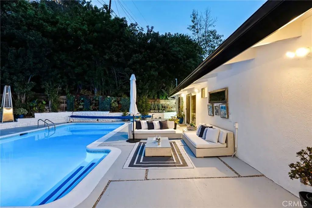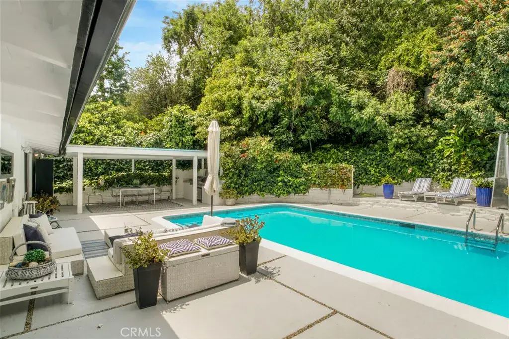 This exquisite mid-century contemporary home with fantastic curb appeal is nestled on a secluded hillside in a coveted Sherman Oaks neighborhood. Ideally located South of Ventura Blvd., this property offers close proximity to top-rated schools, premier dining/shopping, and easy freeway access. It features 4 bedrooms & 4 bathrooms (3 en suite), and 2,597 sq. ft. of thoughtfully designed living space on a 7,988-sf. lot that perfectly blends privacy, comfort, and style. Lush, mature landscaping surrounds the home, highlighted by an inviting heated swimming pool and a covered outdoor dining/BBQ area—ideal for enjoying the quintessential Southern California lifestyle year-round.