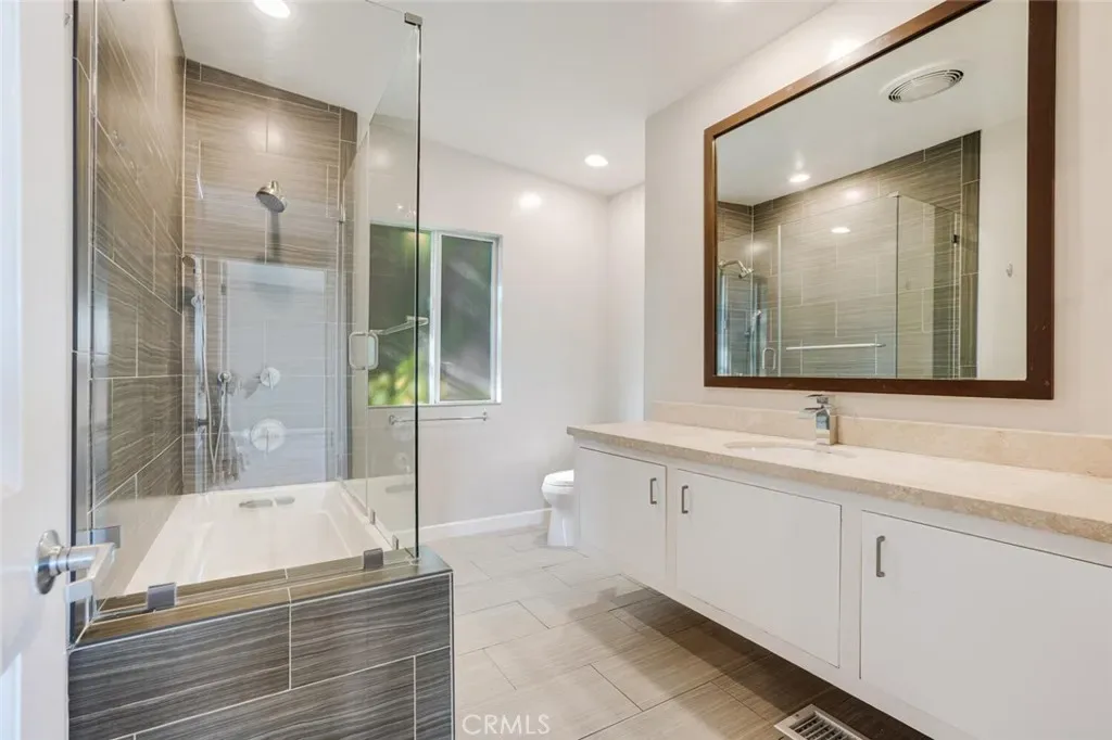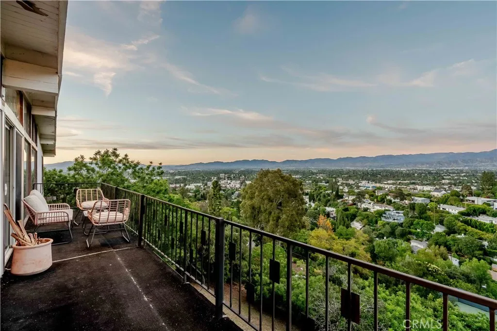 South of the Boulevard! Mid-Century home with amazing 270-degree unobstructed panoramic mountain, valley and canyon views from almost every room. Luxury living at the end of a quiet cul-de-sac. The gated and private grassy front yard leads to this bright and open living space. Enter through the double glass doors and experience the explosive jet-liner views. High exposed post & beam ceilings, stone fireplace, and wide plank wood floors run throughout most of this home’s interior plus a huge balcony overlooking the valley. The Formal Dining area is open to the Living Room and Kitchen and has a custom wet bar plus more of those views. The Chef’s Kitchen offers quartz counters, stainless steel appliances, upgraded cabinets and of course more of those outstanding views. There are 3 Bedrooms, 2 with views, including the Primary Bedroom Suite with a walk-in closet and spacious Primary Bathroom with quartz counters, double sinks, deep spa tub plus separate shower with multiple shower heads and seating. Detached bonus room is great for gym or additional storage, plus spacious 2-car garage. With a prime location in the hills above Sherman Oaks and easy access to Ventura Blvd shops and dining plus great access to Beverly Hills via Coldwater Canyon, this move-in ready lease residence is not to be missed! LANDLORD REQUIRES RENT TO BE PAID IN ADVANCE IN 6 MONTH INCREMENTS.