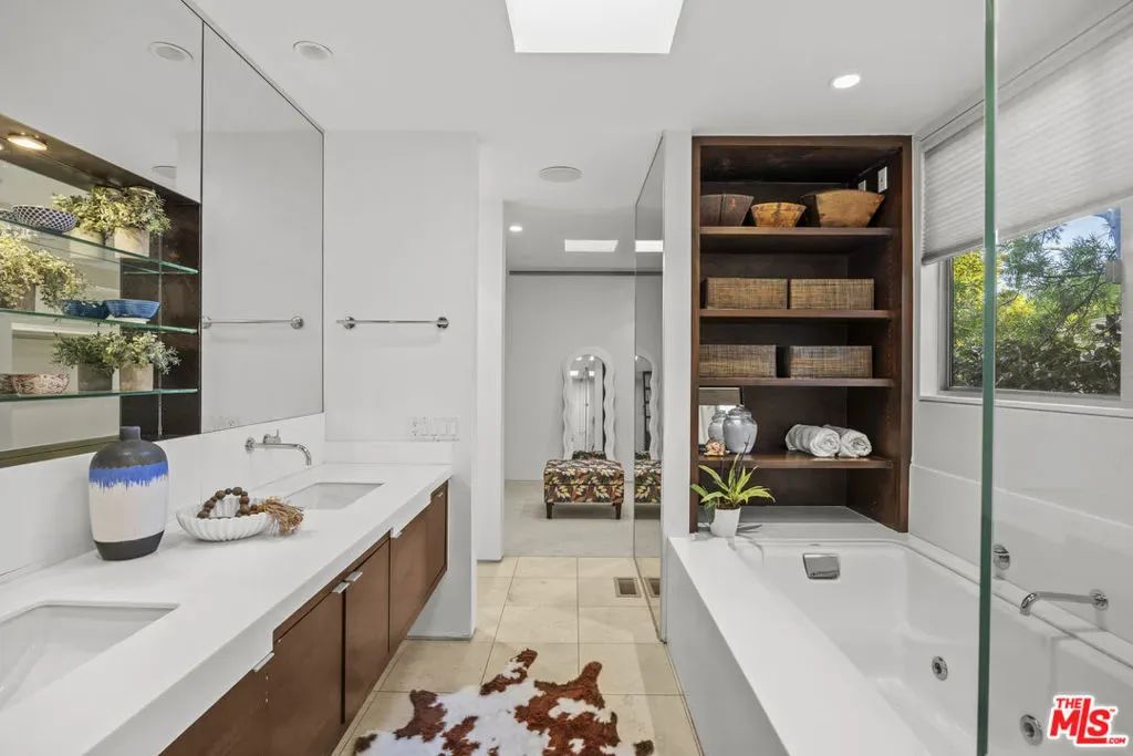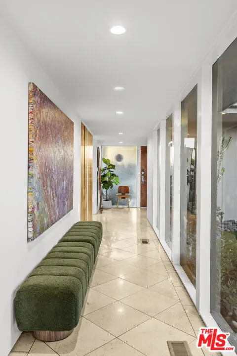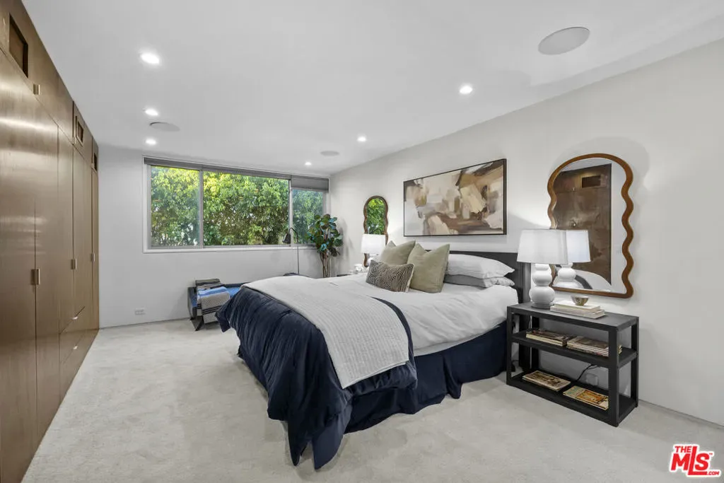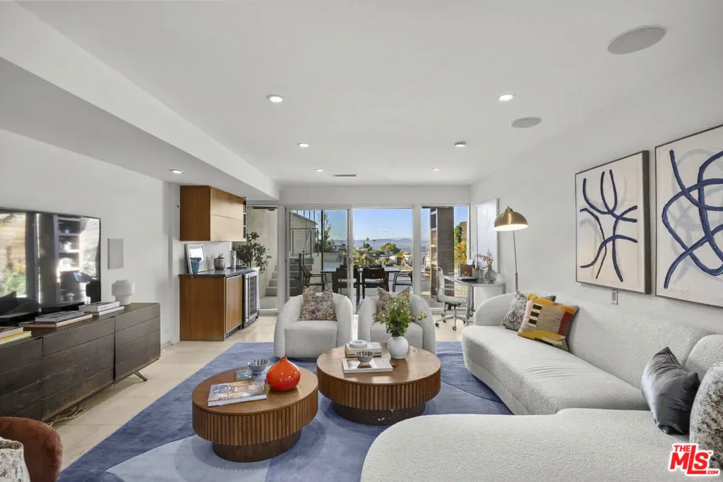An architectural statement by acclaimed mid-century architect Paul Wuesthoff, this 1962 masterpiece is discreetly positioned at the end of a coveted Beverly Ridge cul-de-sac. Privately sited on over a quarter acre, the residence commands sweeping jetliner views and showcases the effortless glamour of true California modernism.Expansive walls of glass dissolve the boundary between interior and exterior, framing cinematic sunsets and lush terraced grounds. At the heart of the estate, a striking central courtyard introduces an extraordinary wraparound poolan architectural focal point that begins within the courtyard and continues along the residence into the backyard, creating a seamless indoor-outdoor living experience rarely found at this price point.Designed for refined entertaining and tranquil daily living alike, the home offers multiple outdoor vignettes, including elevated seating terraces and a generous lower-level flat pad adjoining a secondary primary suiteideal for guests, studio space, or private retreat.With rare usable hillside grounds, architectural pedigree, and effortless connectivity to Beverly Hills, the Westside, and the San Fernando Valley via Beverly Glen, this offering represents a timeless expression of privacy, design integrity, and elevated Los Angeles living.
