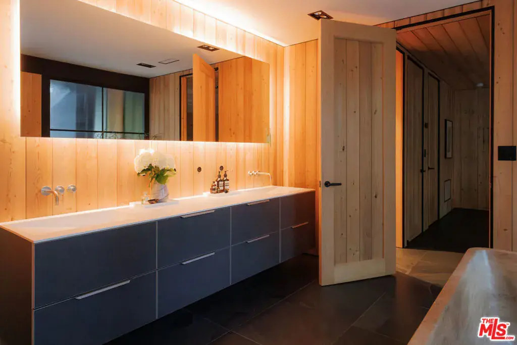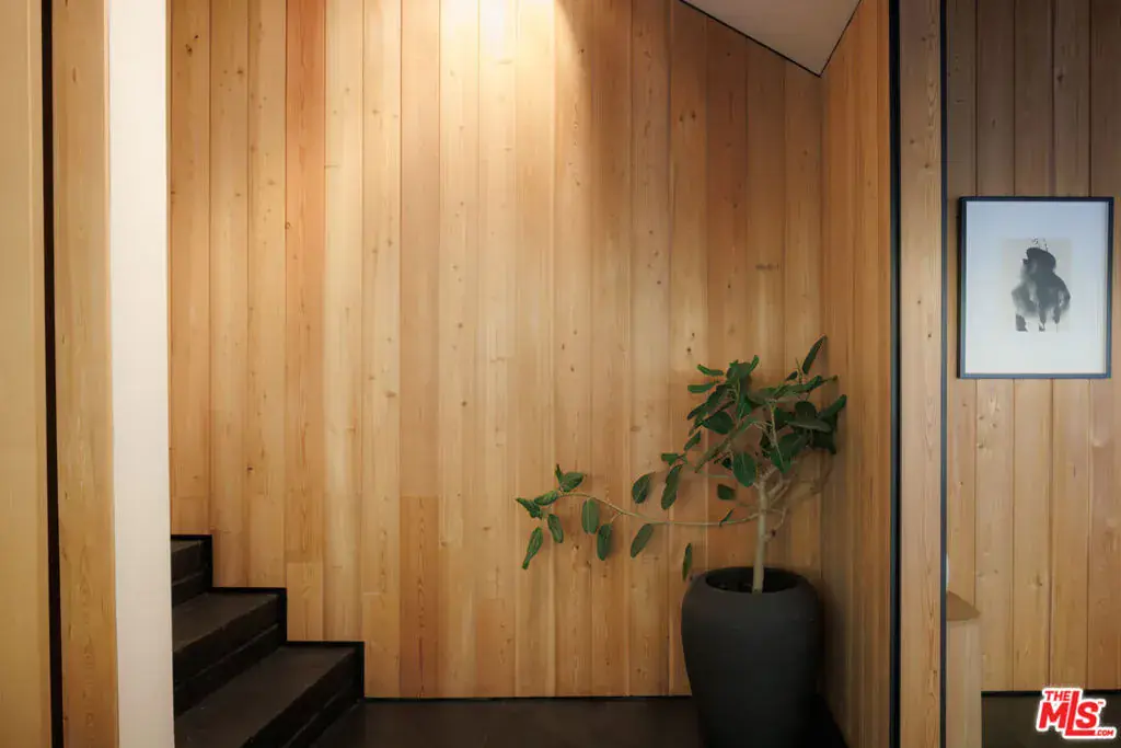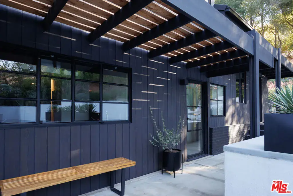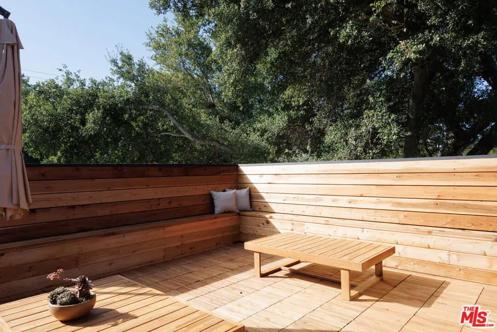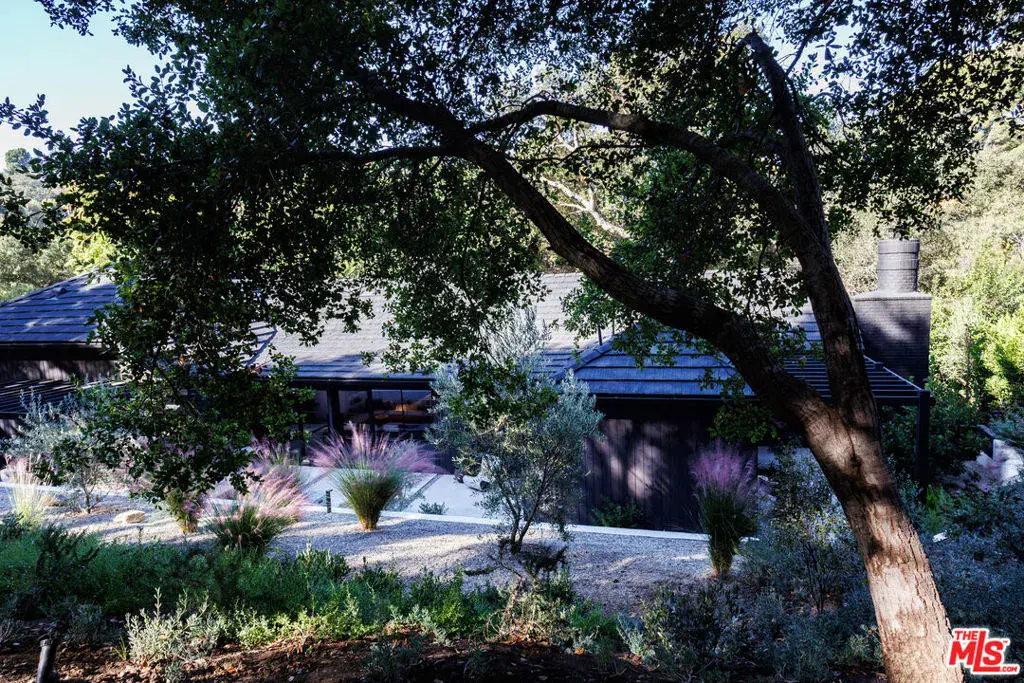 PRICE REDUCTION- A gated architectural residence set on approximately 1.3 acres of land in a private setting surrounded by mature oak trees and native California landscaping. Located near the Westside, Mulholland, schools, and restaurants, the property offers both seclusion and accessibility. The home features large-format slate flooring, custom built-ins, and natural materials throughout. The main living area includes a fireplace, high ceilings, and integrated shelving, flowing into a kitchen appointed with Walker Zanger limestone counters and Gaggenau and Wolf appliances. The primary suite includes a fireplace, walk-in closet, private patio, and en-suite bath with Boffi fixtures and a solid travertine soaking tub. An upstairs secondary suite offers vaulted ceilings and an en-suite bath. The lower level includes a media room, guest bedroom and en-suite bathroom with steam shower. Outdoor spaces include multiple decks, a saline plunge pool, fire pit, and landscaped grounds. The expansive lot size may present an opportunity for expansion, reconfiguration, or further development, subject to buyer investigation, zoning regulations, and city approvals. Buyer is advised to independently verify all information and review seller disclosures.