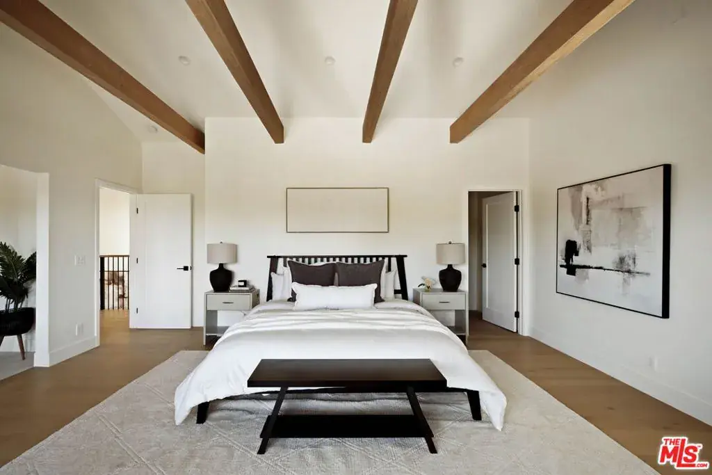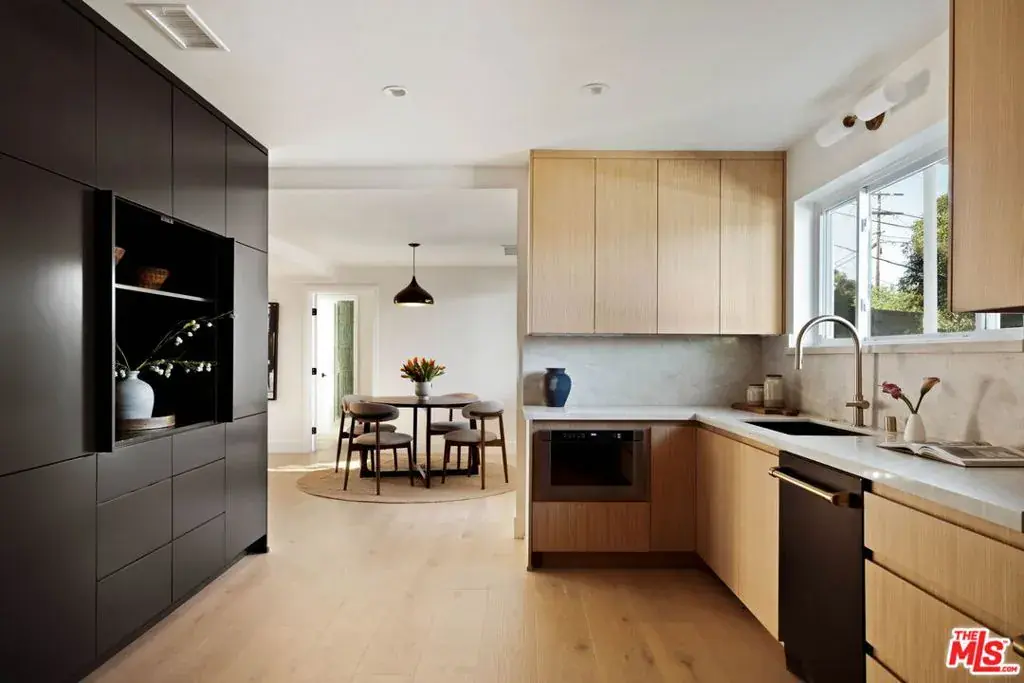 Set high in the hills of Sherman Oaks, this fully renovated home feels private, quiet, and intentionally removed from the street below.The house keeps its mid-century bones while leaning clean and modern throughout. The main living spaces including the living room, dining area, and kitchen are open and airy, with vaulted ceilings, exposed beams, and a natural flow that works for everyday living.On the main level, alongside the kitchen and living room, there’s a separate bedroom with its own en-suite bathroom, ideal as a guest suite or home office. Downstairs, two additional bedrooms share an updated bath, creating a comfortable and functional layout.The kitchen has been completely redone with rifted white oak custom cabinetry, black stainless appliances, and a warm, modern feel that’s clean, current, and great for hosting. Laundry is conveniently located on both the primary level and the lower level, adding flexibility to the home’s layout.Upstairs, the primary suite sits on its own level, paired with a den and balcony that look out over canyon and valley views. The primary bathroom has been fully renovated and includes dual sinks, a soaking tub, and a calm, spa-like feel.Outside, the pool has been fully redone and anchors a private backyard that’s calm, usable, and easy to enjoy. A quiet hillside setting with real views, thoughtful renovations, and a layout that truly makes sense.