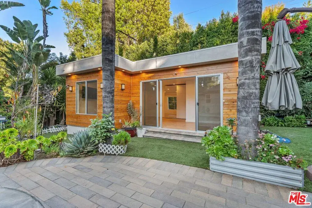 Nestled on one of the most sought after streets South of the Boulevard in prime Sherman Oaks, this gated and tastefully remodeled contemporary home offers privacy, style, and effortless California living. Surrounded by lush landscaping, the 3BD/2BA main residence features stunning hardwood floors, central HVAC, tankless water heaters, Leviton lighting system, Honeywell digital thermostat, alarm system, and security cameras. The eat in kitchen is equipped with premium Miele appliances including a microwave/ convection oven, electric oven, gas range with hood, and dishwasher, along with a KitchenAid refrigerator/ freezer and Newair wine refrigerator. Just off the kitchen is a welcoming family room with a fireplace that opens directly to the pool area and provides convenient access to the garage, creating an ideal indoor outdoor flow. The primary suite is privately situated at the rear of the home and offers tall ceilings, a spacious walk in closet, soaking tub with jets, and separate shower, while two additional bedrooms are thoughtfully positioned toward the front and center with a full bath between them. Studiolux and Toto bidets add a refined touch in the main house, and a convenient laundry closet with newer Samsung washer and dryer is located just off the kitchen. The bright and airy detached guest house includes a bathroom, kitchenette, hardwood floors, mini split A/C, and automatic shades, ideal for use as a home office, gym, creative space, or guest quarters. The backyard is designed for entertaining and relaxation with a heated sparkling pool, covered cabana with ceiling fan, built in BBQ and sink, Solara adjustable patio cover, and a private hedged setting that feels like a serene retreat. Located just moments from Ventura Boulevard favorites including HomeState, Lynx Coffee, Hank’s Bagels, Sportsmen’s Lodge with Equinox, Erewhon, and Sugarfish, as well as close proximity to Dixie Canyon Park and Fryman Canyon Park. This is an exceptional lease opportunity that blends comfort, location, and true Southern California lifestyle.