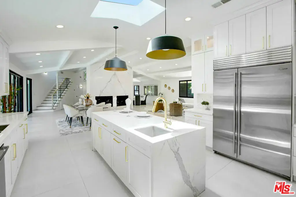 Experience modern luxury in this exceptional contemporary residence, ideally located in the coveted Sherman Oaks Hills. Enjoy convenient access to Beverly Glen, Sepulveda Boulevard, and Ventura Boulevard, within a highly regarded school district. Just steps from the Deervale-Stone Canyon Park scenic hiking trails and wildlife, the home is set in an upscale, family-friendly neighborhood with a vibrant community feel. Recently remodeled, this modern home features sleek architectural lines, open living spaces, and high-end materials throughout. Sun-drenched rooms with oversized windows highlight the expansive open floor plan, complemented by designer finishes and premium fixtures. The gourmet kitchen is a true centerpiece, anchored by premium appliances including a Sub-Zero refrigerator, Wolf range and oven, complemented by elegant porcelain tile flooring and top-tier finishes– ideal for everyday living or entertaining. The luxurious primary suite offers serene neighborhood views and a spa-inspired bathroom with custom cabinetry and built-in storage. Additional bedrooms provide sweeping canyon and neighborhood vistas, creating private retreats for family or guests. Outdoor living is equally impressive, with a private pool, multiple entertaining areas, lush landscaping, modern hardscaping, and an expansive deck with panoramic views. Priced competitively with recent comparable sales, this home offers an outstanding opportunity in a market of rising property values. With its size, quality, and prime location, this residence represents one of Los Angeles’ finest offerings.