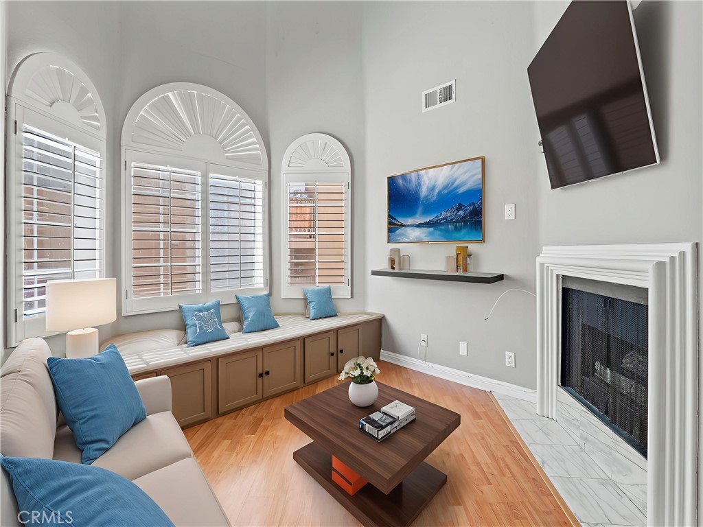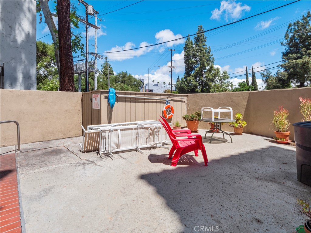 of about 600 sq/ft, made for entertaining on the fall and summer nights. The living area has a cozy atmosphere with bay window seating and a fireplace. It also has a balcony for warm summer nights. The kitchen has been remodeled with granite counters tops and state-of-the-art appliances. The master bedroom has a big walk-in closet and a balcony. The master bath is superb with a large spa tub and separate shower. The other bedroom is very nice and large, with a large closet as well. The aecond bathroom has been remodeled as well with granite countertop. There are plantation shutters and French windows and sliding door dressings. The balconies and terrace have recently been updated and resealed for the new owner and the other owner below to prevent any issues with water damage, please see the supplements included. The whole unit has been painted for the new owner. Only few minutes away walking for all kinds of shopping, Fashion Square Mall, services and restaurants.Really a prime location in Sherman Oaks.