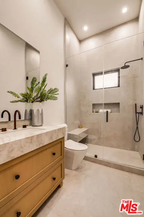 The One you’ve been waiting for! Showcasing extraordinary curb appeal with an impressive 75-foot frontage on a huge 10000+ sq ft lot, this brand-new construction residence defines modern luxury, blending top-of-the-line finishes with timeless design. Behind its striking stone facade, the home opens to expansive, sun-filled interiors featuring wide-plank white-oak floors, Taj Mahal stone surfaces, custom white-oak cabinetry, integrated sinks, and rich wood paneling throughout. The open-concept living and dining areas flow seamlessly into a chef’s kitchen appointed with Wolf appliances throughout, a generous island, and custom cabinetry, perfect for both intimate meals and elevated entertaining. Floor-to-ceiling glass doors bring the outdoors in, leading to a private backyard oasis with a sparkling pool and spa framed by sleek hardscape and lush landscaping. The main residence offers 5 bedrooms, each with its own en-suite bath with Toto automatic toilets, plus a stylish powder room. The serene primary suite includes a spa-like bath , a spacious walk-in closet, and a private patio overlooking the serene private backyard. A detached ADU with its own legal address adds versatility: perfect for guests, in-laws, a private office, or an income-producing rental. Additional highlights include 8+ built-in security cameras and speaker system throughout the property for enhanced convenience and safety. Ideally located, this home is walking distance to Harvard-Westlake, Notre Dame, and Campbell Hall, three of California’s most prestigious schools, two ranked in the state’s top 10 for athletics. Just moments away are Equinox, Erewhon, Sportsman’s Lodge shopping plaza, and a wealth of Studio City’s top dining and shopping destinations. Delivering sophisticated luxury, extraordinary curb appeal, and unmatched livability, this is truly The One you’ve been waiting for.