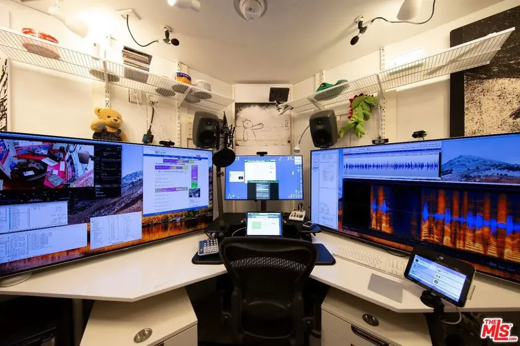 Set on a quiet, tree-lined street in the highly coveted Library Square neighborhood of Sherman Oaks, this custom-built 2008 estate offers exceptional privacy, versatility, and a world-class three room recording studio for audio and video. With 3,168 sq ft of living space, the two-story home features 6 bedrooms and 4 bathrooms 3 beds/2 baths on each level making it ideal for either single family, multi-generational living, rental income or live/work versatility. The rear structure boasts a four hundred square foot studio space above with full kitchen and bath and the recording facility below, adding an additional bedroom and two more baths for a total of 7 bedrooms and 6 baths. Both levels in the main house are flooded with natural light and offer soaring 10 ft ceilings, recessed lightin and a bright, open feel. Finishes include rich hardwood and travertine floors, modern kitchens with granite countertops, top-of-the-line stainless steel appliances, walk-in pantries, breakfast bars and a cozy fireplace. Bathrooms showcase stone flooring and sleek frameless glass shower surrounds. The entire home is “smart home equipped” – almost every dimmer, ceiling fan, door lock, HVAC, alarm sensor and irrigation control can be remotely supervised. Each level enjoys its own primary suite and private entrance, with easy interior access between floors as well as exterior entry. Washer and dryer have access located on the shared first floor. Outdoors, the gated property includes a large grassy backyard with mature fruit trees, room for a pool and additional gated parking. The detached 2-car garage has been transformed into a state-of-the-art professional grade multi-room recording studio, complete with a dedicated bath/shower and high speed satellite and fiber-optic internet service. Above it is a 400 sq ft studio with kitchen, bath and its own dedicated ground level laundry facilityperfect for a home office, guest, or a creative retreat. A rare opportunity to own a turnkey income-generating property or a flexible family estate in one of Sherman Oaks’ most desirable neighborhoods. Conveniently close to renowned dining, outstanding shopping and just a short drive to the Westside, beaches and freeways. Create your California lifestyle.