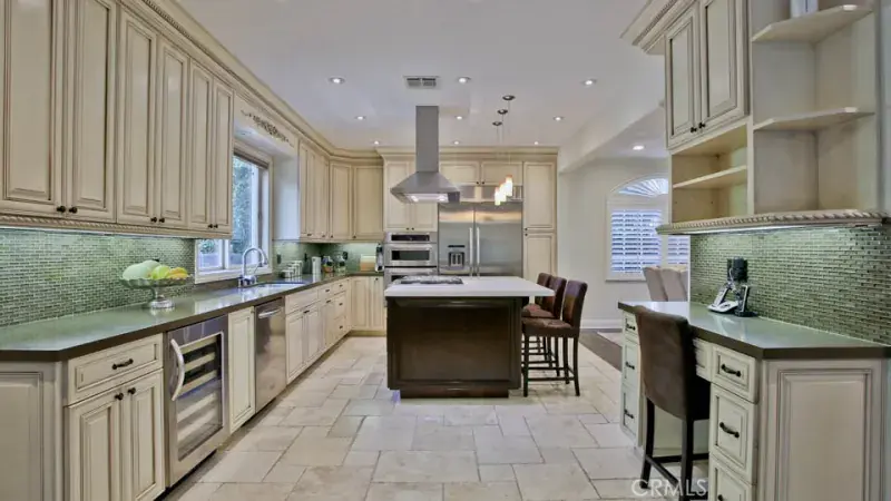 Welcome to this beautifully remodeled and fully furnished home located in prime Sherman Oaks just steps away from great restaurants and shops on Ventura Blvd., Westfield Mall, Trader Joe’s and Ralphs. This spectacular two story, 5 bedroom, 4.5 bathroom, private and gated home features high ceilings, dark hardwood floors, LED recessed lighting throughout, designer kitchen with Caesar Stone counters, center island, custom cabinets, and built-in stainless steel appliances including a wine fridge. The formal living room with soaring high ceilings and gas fireplace, provides a focal point for the residence. The adjacent formal dining room opens to the kitchen and connects to the bright and spacious family room. A beautiful stairway leads up to 3 bedrooms plus an over-sized Master suite with breathtaking walk-in closet, fireplace and balcony, it’s like a dream! The master bathroom features dual sinks, steam shower and Jacuzzi tub! Private resort styled backyard featuring a sparkling, salt water system pool, spa and waterfall with built-in BBQ area equipped with a sink, fridge and marbled counter top is just perfect for entertaining. Notable features include fully integrated alarm system, 8 HD video surveillance cameras, and indoor/outdoor surround sound system. Brand new furniture throughout the house and a thermostats on each floor.