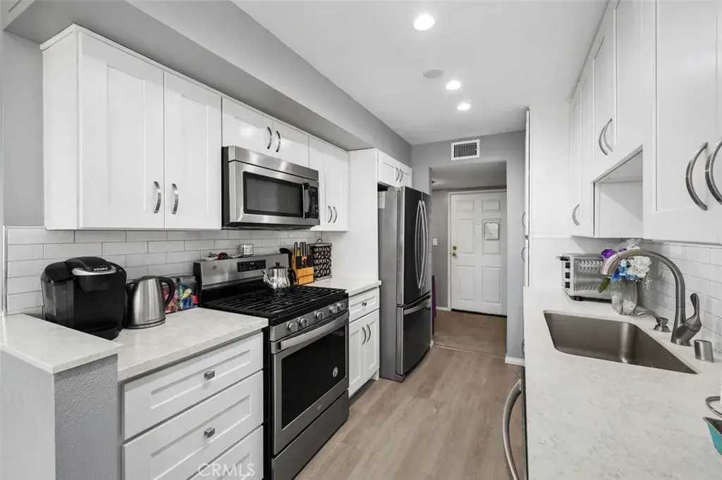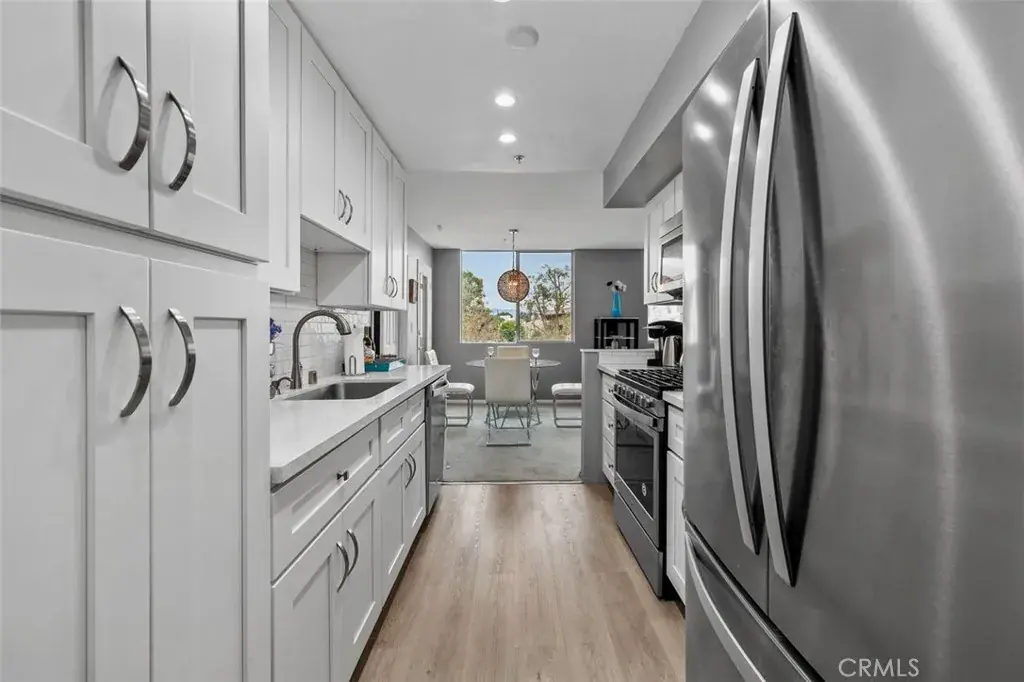 Welcome to Unit 239 at 4501 Cedros Avenue, a beautifully remodeled 2-bedroom, 2-bathroom residence offering 1,151 square feet of stylish living space in the heart of Sherman Oaks. Remodeled in 2020, this light and bright unit is filled with natural sunlight through large dual-pane windows, complemented by elegant plantation shutters throughout. The open living and dining areas create an inviting atmosphere ideal for both everyday living and entertaining.