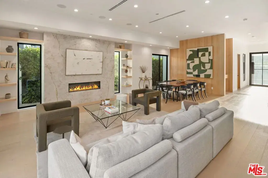 THE SELLER SAYS ” He will finance with 40% down 4.5% interest Payment comes to 12068.82$ property tax included” This new construction gated home sits behind hedges in the coveted and convenient Library Square area of Sherman Oaks. Fresh wide plank white oak hardwood floors look stylish and contemporary, From the impressive entrance with oversized pivot door to the smart home system that controls lighting, speakers and cameras, to the micro cement paint this contemporary home feels well built. The first floor features a custom kitchen with new Thermador appliances, wood paneling, an open floor plan with a living room fireplace and bifold glass doors that create an indoor-outdoor experience with the backyard and pool. The first floor has an office with an ensuite full bath and laundry room. On the second floor are 3 spacious, light-filled bedrooms, The ensuite washrooms finished with the most stylish materials currently available and to a very high standard. Double paned windows, high efficiency central heat and air conditioning, and solar panels create a comfortable and energy efficient home. A pool house with a full bath is the perfect place for kids to play or to rinse off after a swim. Finally, the rooftop deck offers jaw dropping views of the friendly neighborhood.