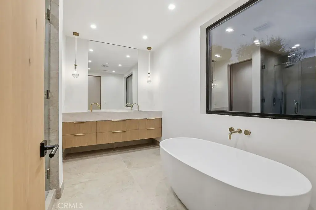 Brand new modern construction available for lease featuring a two story main residence with 5 bedrooms and 5 bathrooms plus a separate ADU. This thoughtfully designed home offers a bright open floor plan with high ceilings oversized windows and abundant natural light throughout. The main residence showcases contemporary finishes a chef’s kitchen with premium appliances custom cabinetry and seamless indoor outdoor flow. Each bedroom includes its own bathroom providing comfort and privacy. The primary suite features a spa inspired bathroom and generous closet space. The separate ADU offers additional flexibility and is ideal for extended family guests a home office or creative space. The property is complemented by modern landscaping and striking architectural design that blends style and functionality. Located in a desirable neighborhood close to shopping dining and major routes.