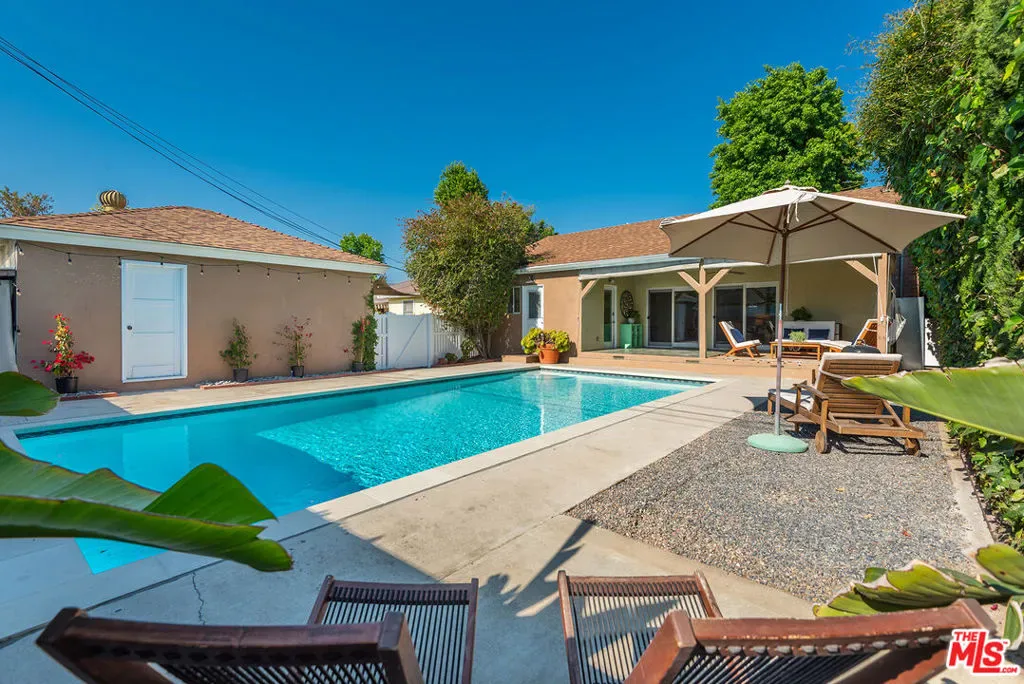 Welcome to this wonderful 3-bedroom, 2-bathroom home set on a lush landscaped lot. Step in through the beautiful bougainvillea-covered gate to your private court yard. The living room boasts wood floors, a fireplace, and a dining area, complemented by two sets of glass doors leading to the backyard. The remodeled kitchen features maple cabinets, updated stainless steal appliances, Caesarstone counters and a spacious center island with breakfast bar and storage amenities.The spacious primary bedroom provides dual closets and an updated bathroom with dual sinks and a soaking tub with a rain showerhead. The third bedroom, with its charming window seat, offers versatility as a den or additional bedroom. Outside, the private yard hosts a covered dining patio and a swimmer’s pool, ideal for outdoor enjoyment. Don’t miss the opportunity to experience the allure of this exceptional property firsthand.