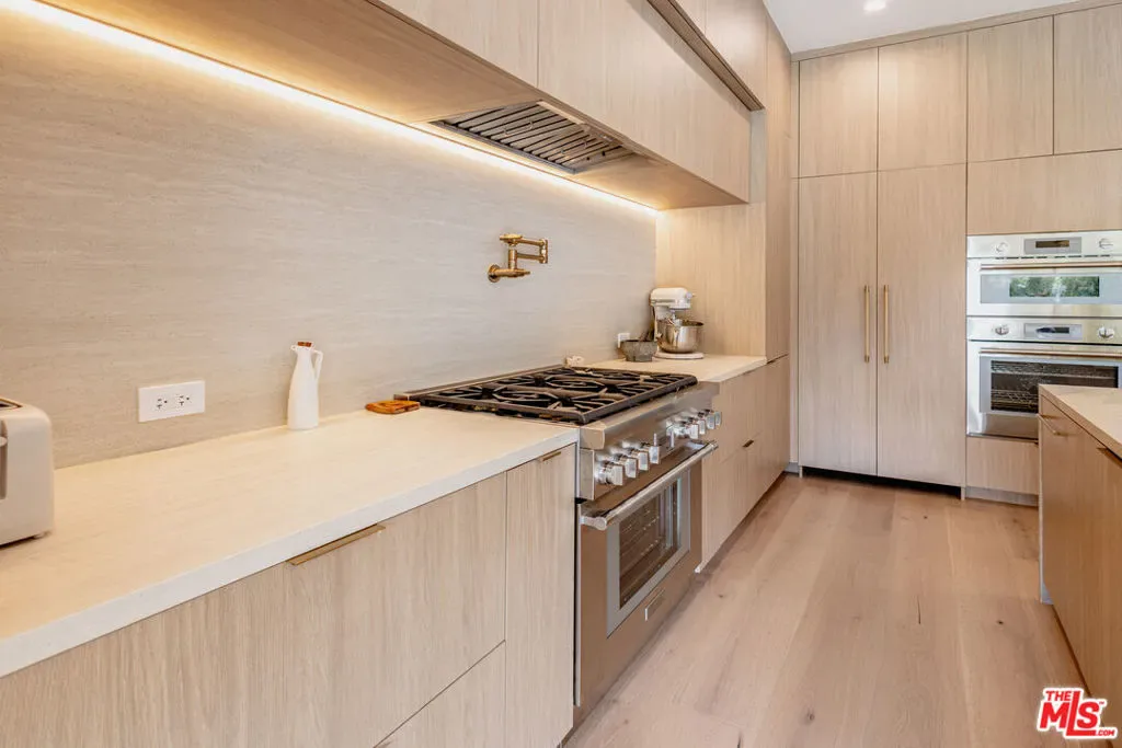 Stunning newly constructed Mediterranean-inspired residence offering refined design and exceptional craftsmanship throughout, complete with a thoughtfully designed ADU for added versatility. The home showcases an open and airy floor plan defined by soaring ceilings, abundant natural light and seamless indoor-outdoor living. At the heart of the home, a gourmet chef’s kitchen features high-end finishes and a spacious walk-in pantry, flowing effortlessly into the main living and dining areas to create an ideal setting for both everyday living and entertaining. Large glass openings connect the interior spaces to the beautifully designed backyard retreat. The luxurious primary suite serves as a private sanctuary, complete with generous storage and a spa-inspired bath designed for relaxation. Outdoors, the resort-style grounds offer a sparkling pool and Jacuzzi with waterfall feature, outdoor shower, mature olive and lemon trees, and a charming herb garden. An outdoor kitchen and covered patio with retractable screens, ceiling fans, and heaters create a comfortable year-round entertaining environment. Thoughtfully designed with timeless finishes and modern conveniences, this exceptional residence is ideally located just moments from Ventura Boulevard’s vibrant collection of shops, cafe’s and restaurants.