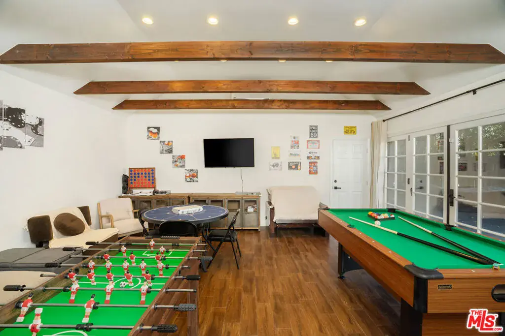 Discover a beautiful, pet-friendly home in the heart of Sherman Oaks, where comfort, style, and convenience come together seamlessly. This charming property features a spacious 3-bedroom, 2.5-bath main house, along with a newly designed 2-bedroom, 1-bath detached ADU, offering an ideal living solution for families or groups. Located just minutes from the vibrant shops and restaurants of Ventura Boulevard, this home combines classic charm with modern amenities. Upon entering through the charming white picket fence, you’ll be greeted by a large, shady elm tree, creating an inviting ambiance. The main house boasts an open and airy floor plan filled with natural light, featuring a large living room with a striking picture window, perfect for gatherings. An elegant dining area leads to the updated, eat-in kitchen, offering plenty of space for meal preparation and casual dining. Two spacious primary bedrooms, both with en-suite bathrooms, provide privacy and comfort for occupants. The home is complete with a highchair and booster seat. Stepping outside, you’ll discover a private backyard oasis, perfect for relaxation and entertainment. The expansive patio features a BBQ area, hot tub, and even a small putting green, creating a versatile space for outdoor living. The separate 800-square-foot ADU adds further appeal with its own game room, complete with a pool table, and two additional bedrooms. The ADU’s French doors and large windows bring in abundant natural light, creating a bright and welcoming atmosphere. This property offers the ultimate in flexibility, comfort, and convenience, making it an excellent option for your furnished stay. Whether you’re looking for a relaxing retreat or a well-appointed space near local attractions, this Sherman Oaks gem delivers.