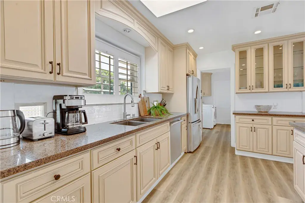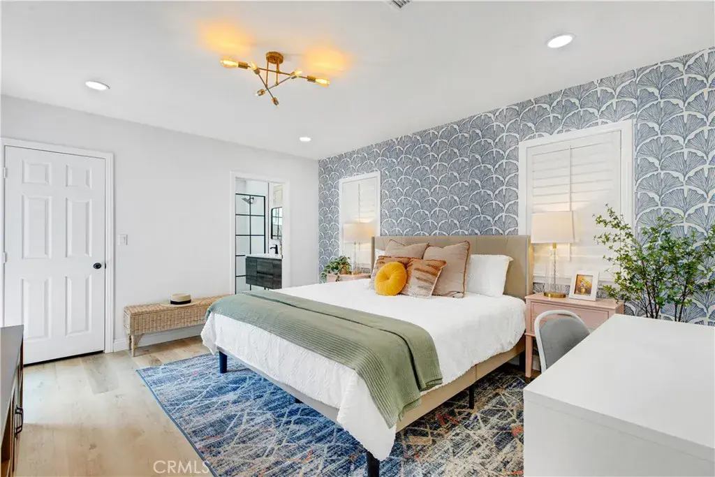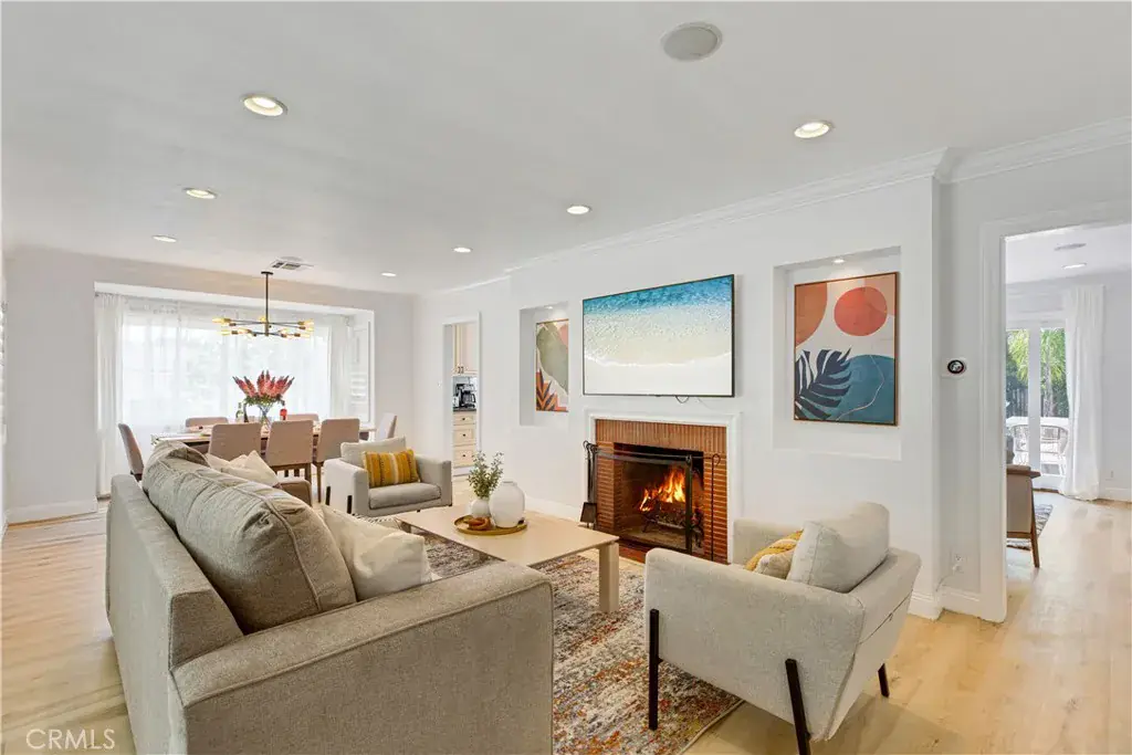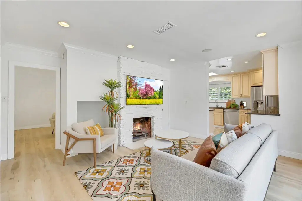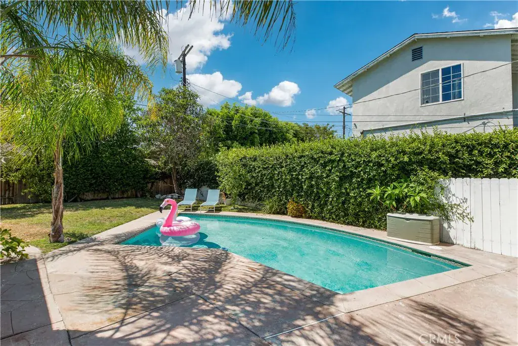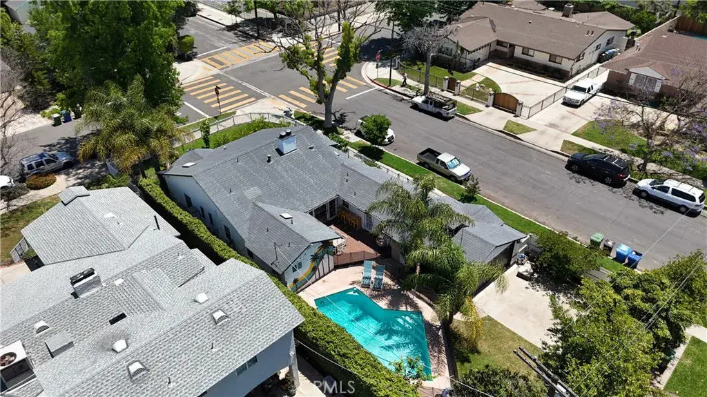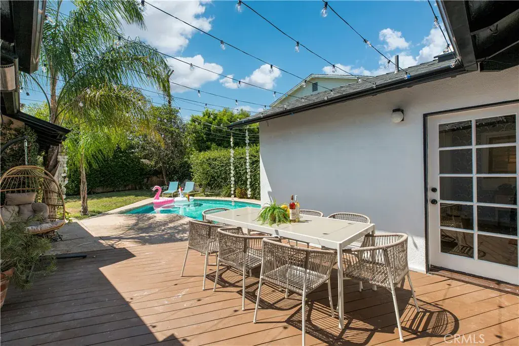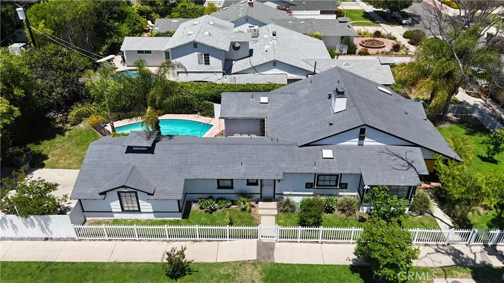 Welcome to this beautifully updated single family Mellenthin “Birdhouse” ranch in prime Sherman Oaks, blending timeless midcentury charm with thoughtful modern upgrades. This 3 bedroom, 3 bathroom home offers 1,811 sqft of living space on a spacious 7,377 sqft lot, featuring two fireplaces, custom plantation shutters, recessed lighting, and wide plank wood flooring throughout. The chef’s kitchen boasts granite countertops, stainless steel appliances, and soft close cabinetry, while the sunlit dining area includes a bay window perfect for entertaining. The inviting family room opens to a private backyard with a sparkling pool, custom mural, wood deck, and hanging chair swing. Additional features include updated bathrooms with designer finishes, dual living areas, an indoor laundry room, attached 2 car garage, gated driveway, EV ready setup, and lush landscaping with citrus trees, all in a prime location near Whole Foods, dining, shopping, local parks, with easy access to freeways, schools, and everyday essentials.